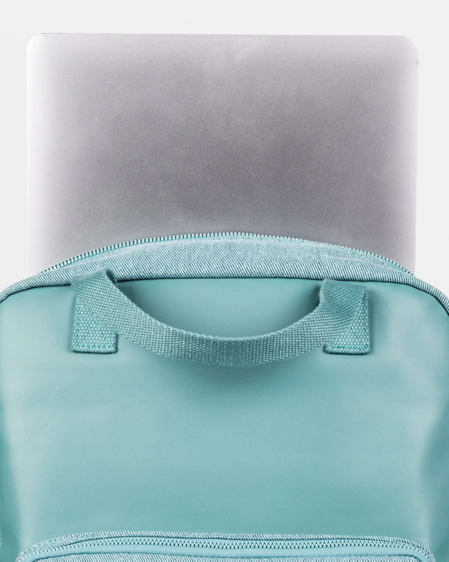 This mini Melting Spot backpack from ROXY is a perfect accessory for daily adventures. Crafted from durable cotton canvas, it features a roomy main compartment, padded laptop sleeve, and convenient pockets for all your on-the-go needs. Adjustable straps and a padded back panel ensure a comfortable, customized fit, while the sleek logo branding adds a touch of style. Featured here in the Mineral Blue colorway.