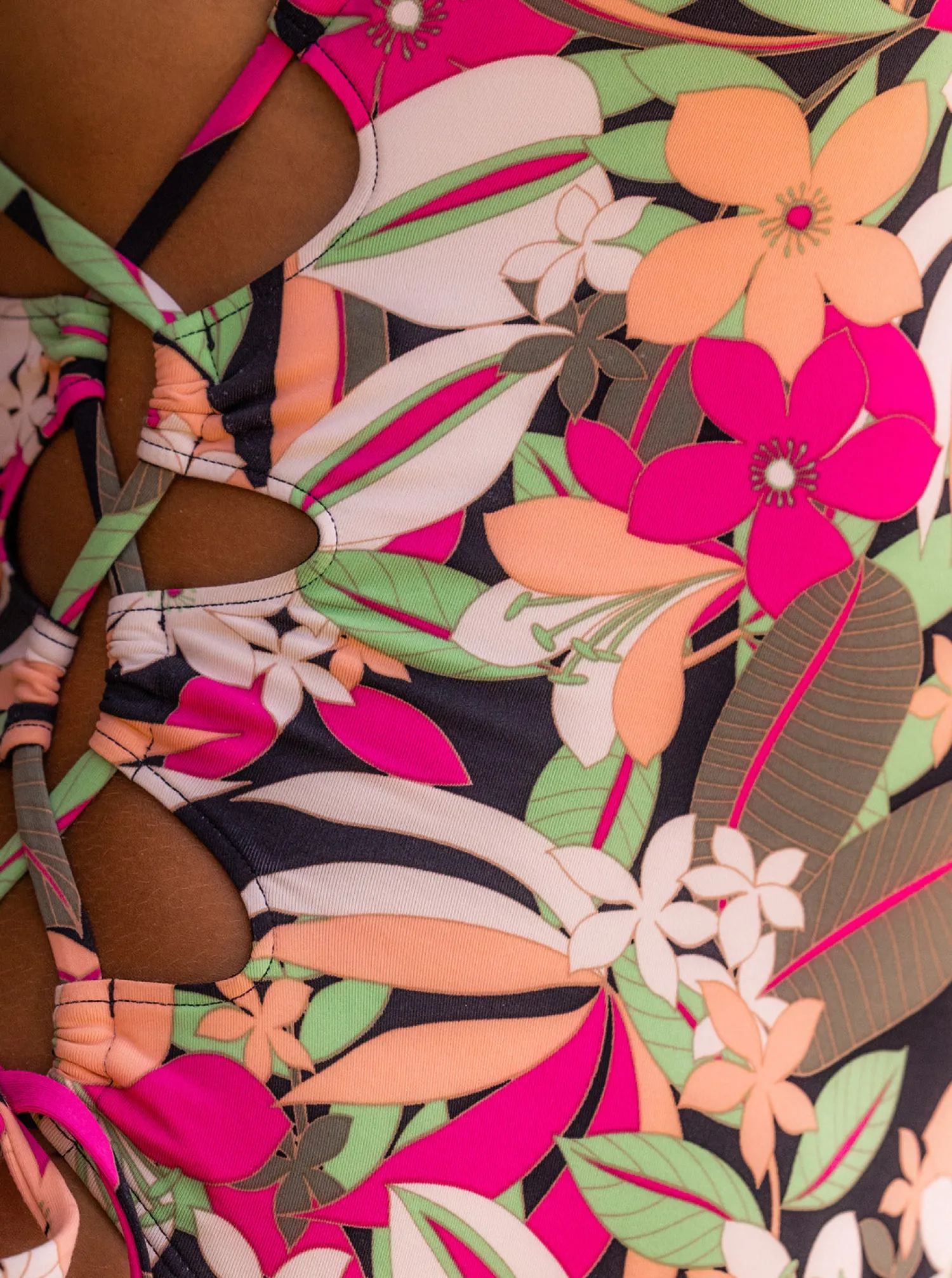Our ROXY Beach Classics Lace-Up One-Piece Swimsuit is designed for the modern beachgoer. Crafted from a soft, recycled, and resistant stretch-nylon blend fabric with adjustable tie straps and removable pads for regular support. Full coverage and crisscross straps on the back make it perfect for any aquatic adventure. Featured here in the Anthracite Palm Song S colorway.