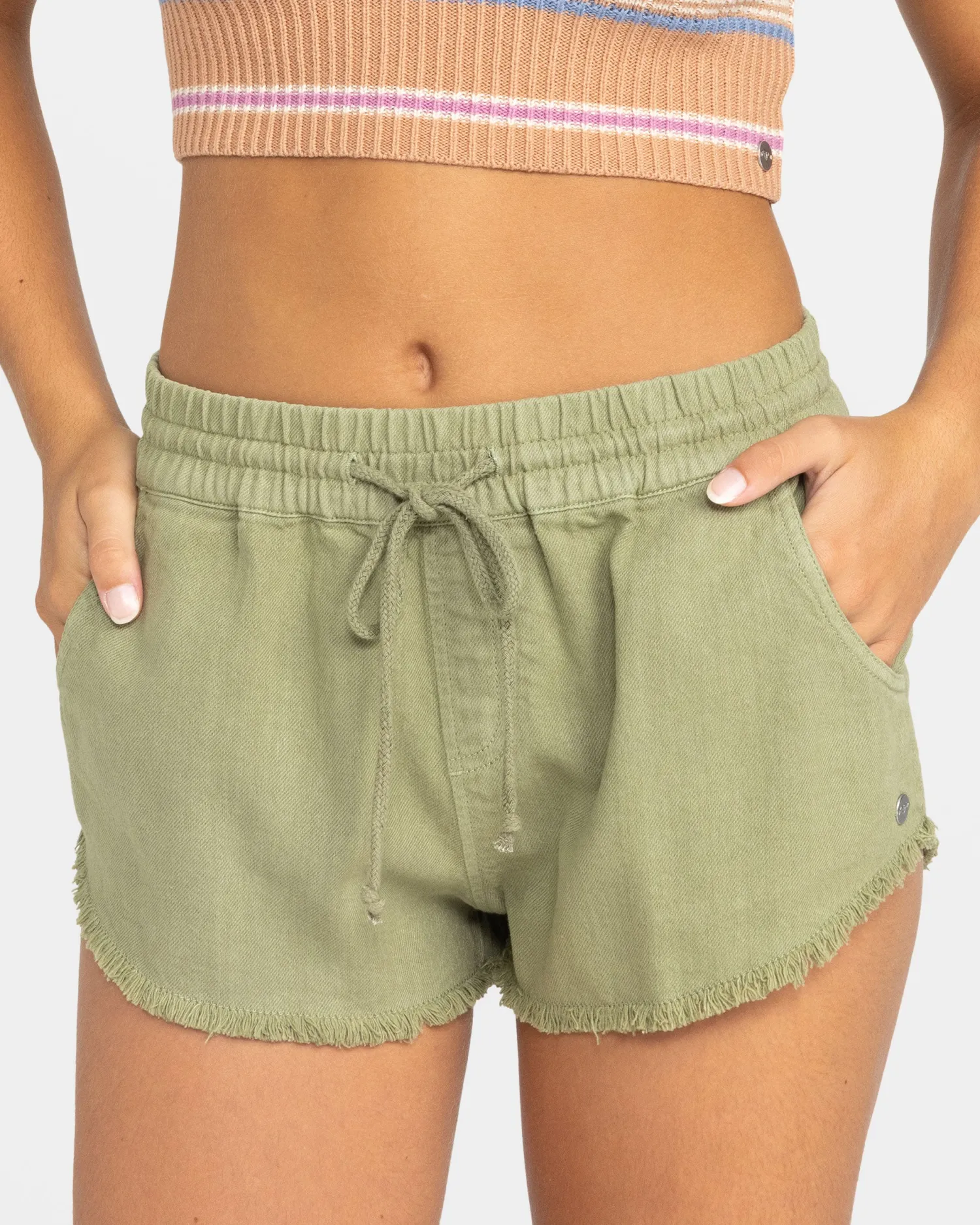 Slip into effortless style with the Scenic Route elastic-waist shorts by ROXY. Pigment-dyed and enzyme-washed to give them a well-worn feel, these relaxed-fit cotton shorts feature an adjustable drawcord waist and roomy side pockets for all-day comfort and convenience. Whether you’re hitting the town or lounging at home, these versatile shorts are the perfect companion for your scenic adventures. Featured here in the Oil Green colorway.
