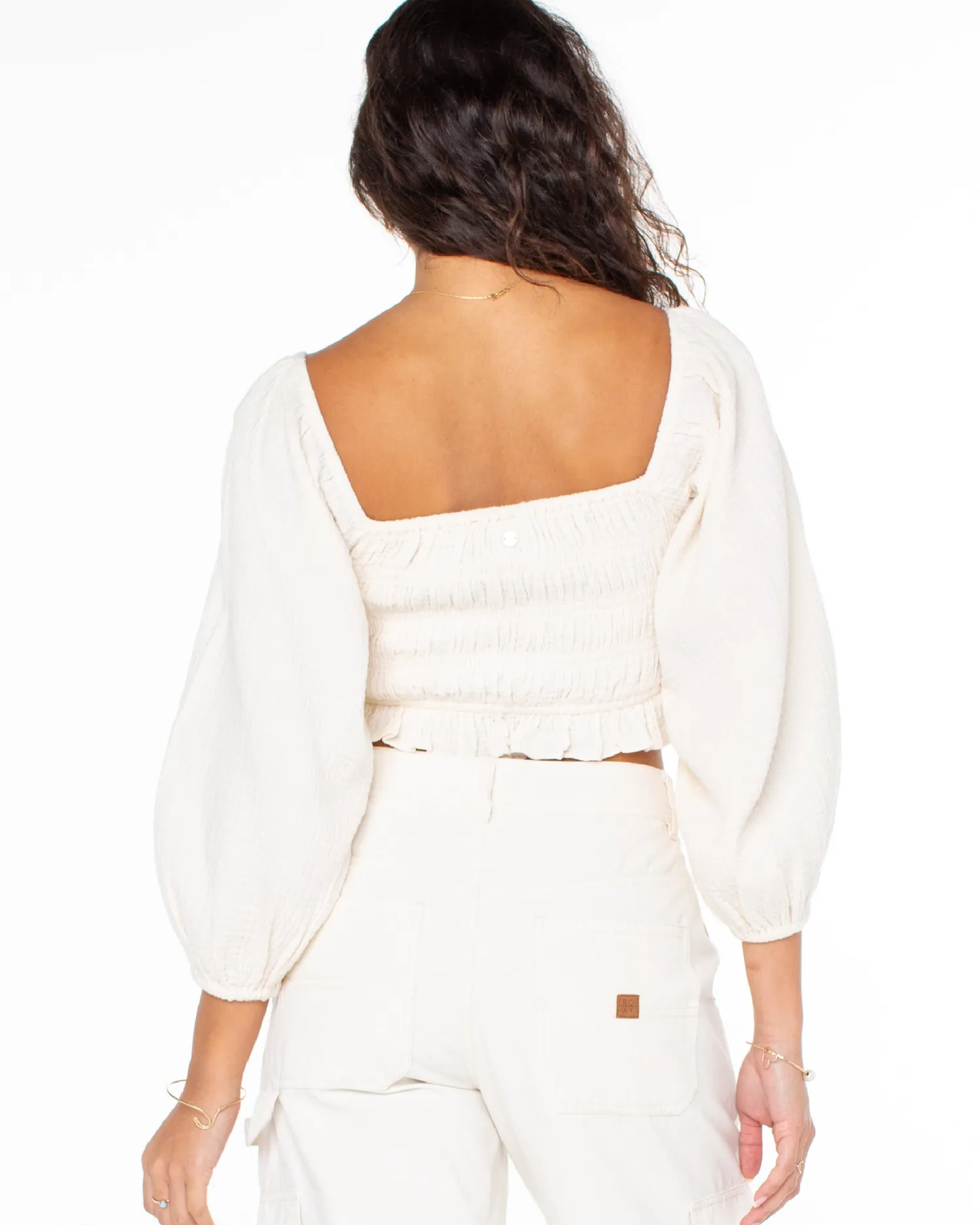 Effortlessly stylish, this woven cotton top boasts a lightweight double gauze texture. With long sleeves and breathable fabric, it’s a warm-weather staple to stay cool and chic.