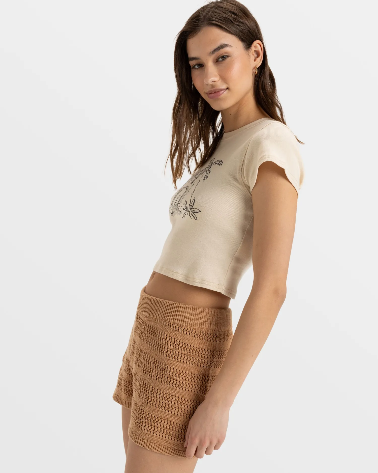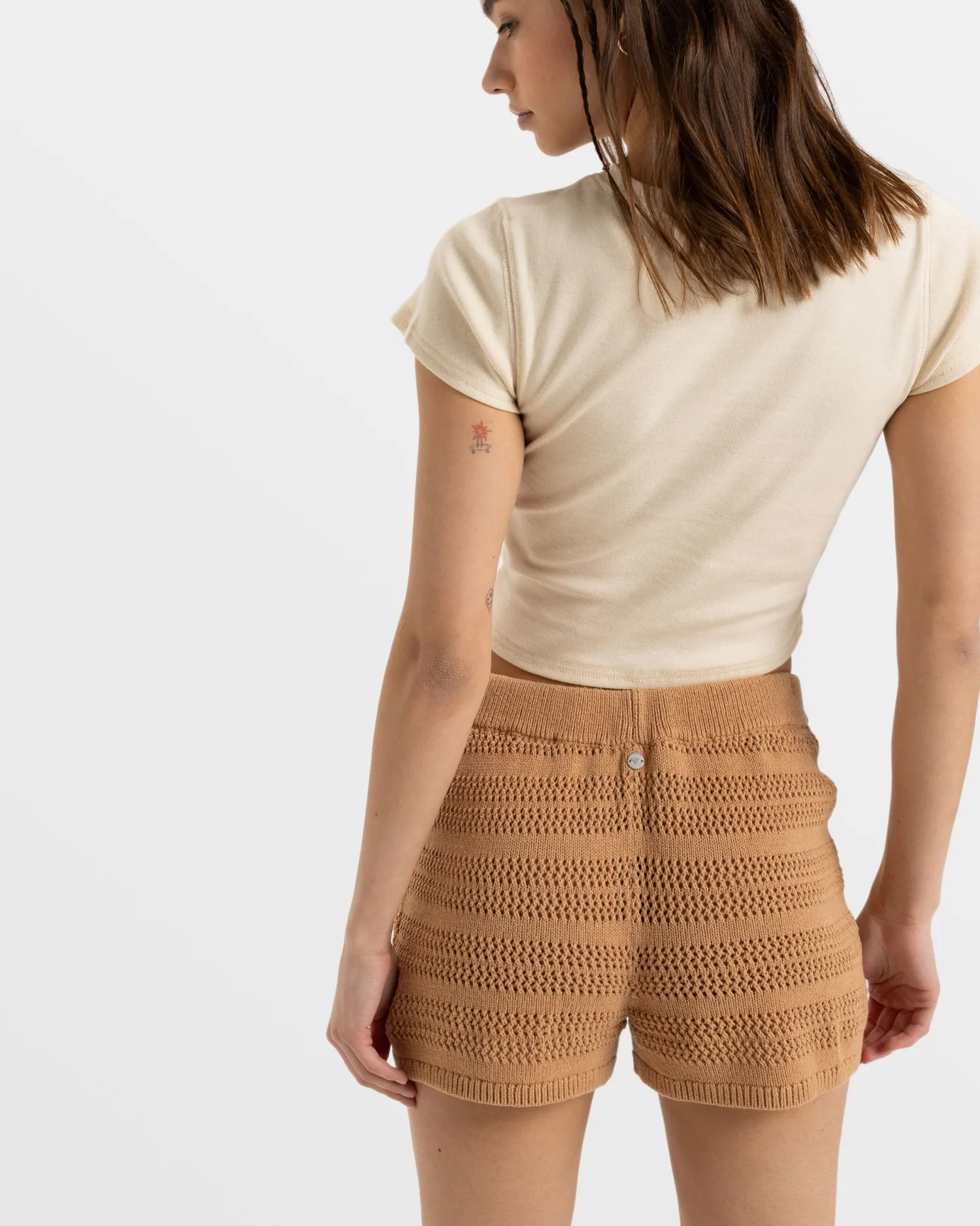 Spice up your daily look with these open-knit striped shorts. With their relaxed fit, elastic waist, and ribbed hem detail, these retro-inspired beach shorts deliver a perfect warm-weather vibe. Featured here in the Camel colorway.