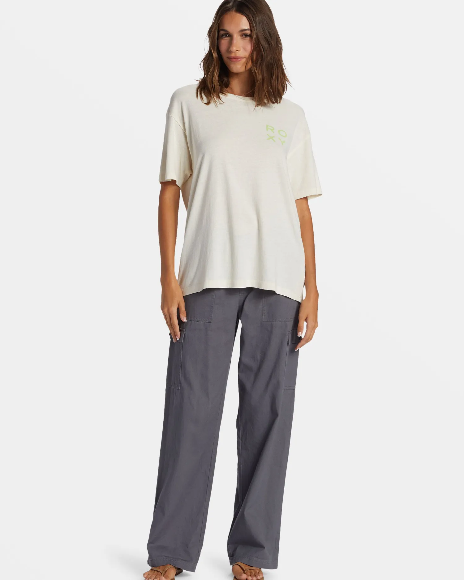 Tap into an island state of mind with the Tropic Daze Short Sleeve T-Shirt. Crafted in a soft cotton slub jersey, this oversized tee has a laidback vibe that’s perfect for catching rays or running errands in style. The ROXY regional graphics on the chest let you wear the beach lifestyle everywhere you roam. Featured here in the Egret colorway.