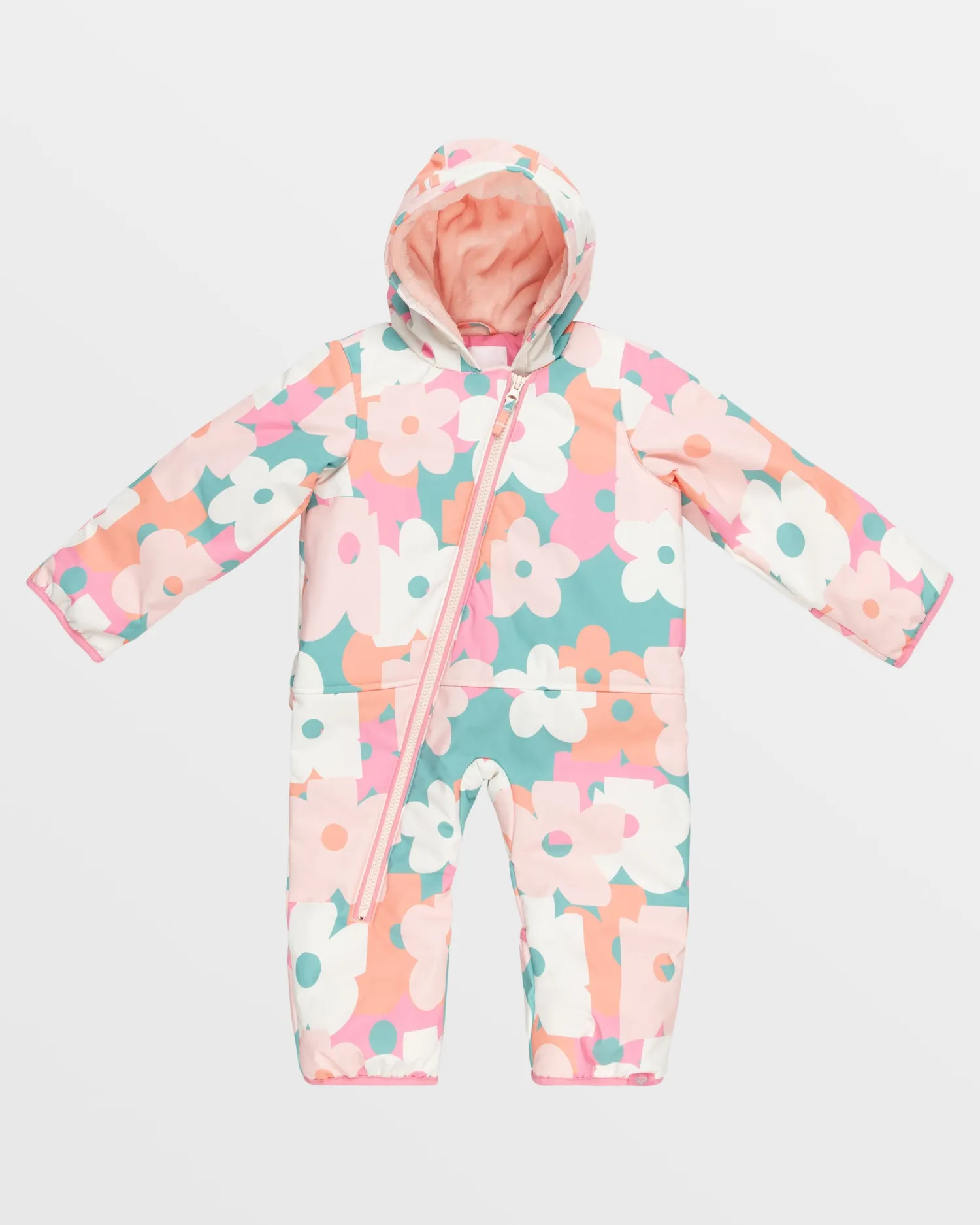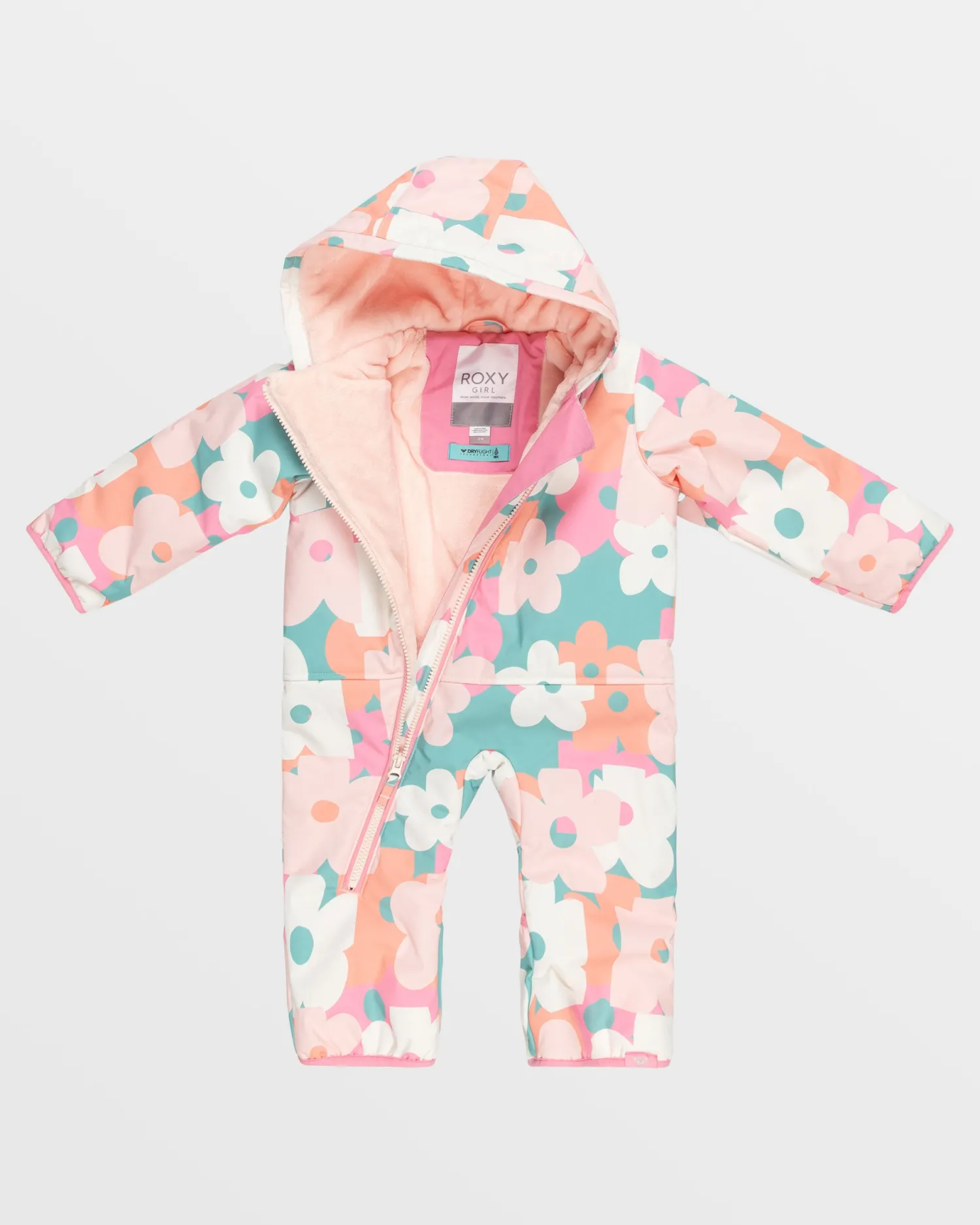 Fun-filled snow days start with the Babies Rose Snow Suit from ROXY. This regular-fit snow suit is crafted from a partially recycled polyester blend, featuring ROXY DryFlight ® waterproofing and Warmflight ® insulation to keep your little one cozy, comfortable, and dry. The fixed hood and full-zip front make it easy to bundle up for the cold. Featured here in the Canton Prima colorway.