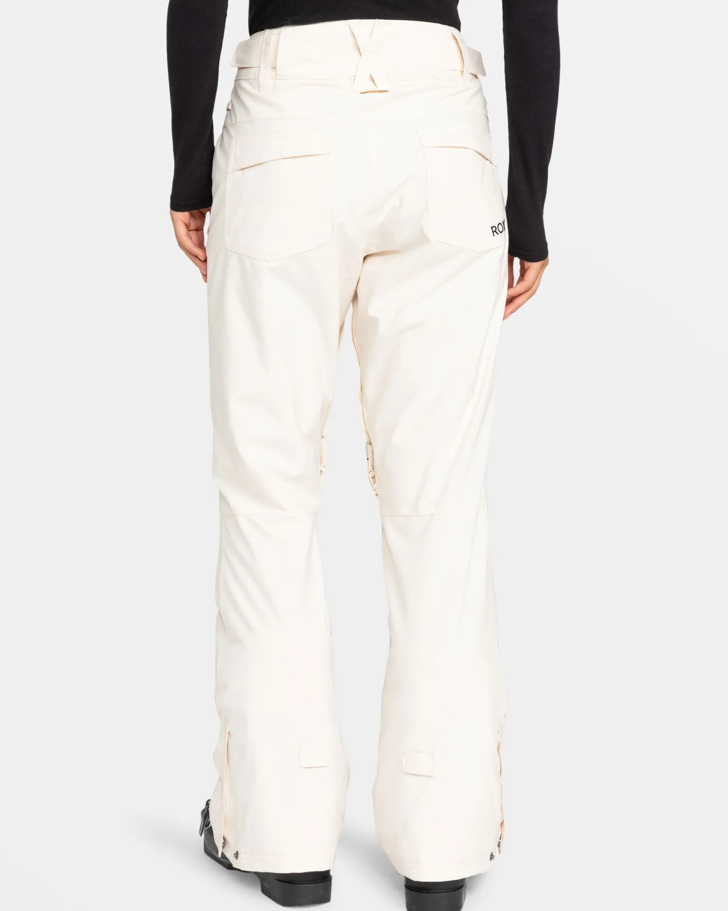 Gear up for an epic day on the mountain with the Backyard Snow Pant from ROXY. Pairing a flattering tailored fit and expert waterproofing, this partially recycled polyester snow pant keeps you dry and stylish while you ride. ROXY WarmFlight ® insulation brings warmth without the bulk, while technical trims like mesh-lined leg vents, a snapped leg gusset, and boot gaiters keep the elements out. Slip them on and bring on the backcountry bliss. Featured here in the Buttercream colorway.