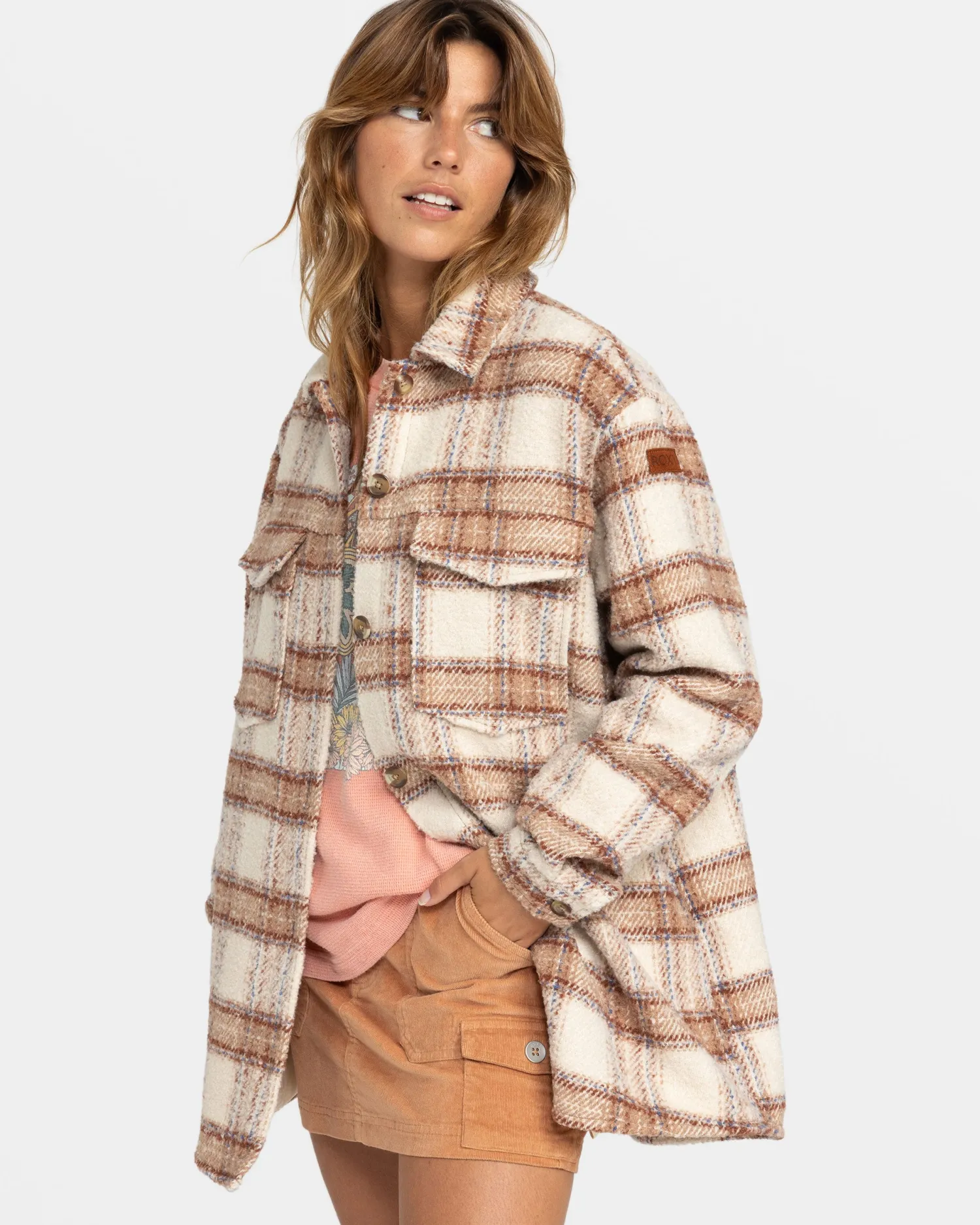 Cozy up in the Check The Swell IIII Shacket, a plaid wonder that blends polyester and wool for a luxuriously soft feel. This relaxed-fit layer features a collar, chest and side pockets, and front buttons for a rustic-chic vibe. Whether you’re chasing swells or just lounging by the fire, this shirt-jacket has your back. Featured here in the Parchement Paradise Plaid colorway.