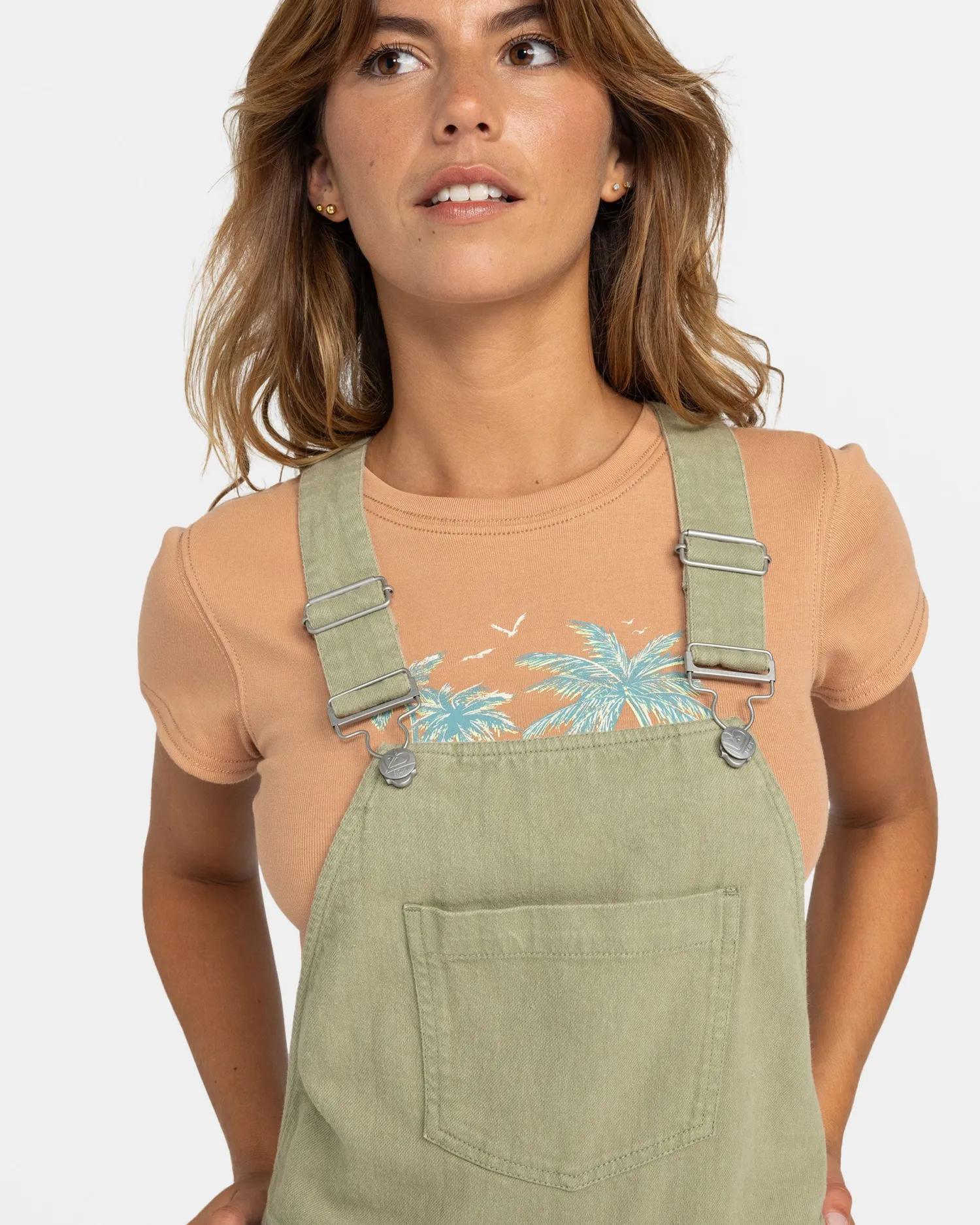 The Crystal Coast Short Overall from ROXY is your one-and-done seasonal staple. Crafted from washed cotton twill, this classic bib design features adjustable straps, metal clasp closures, and pockets galore for all your essentials. Whether you’re hitting the beach or running errands, this versatile piece brings a touch of laid-back chic to any look. Featured here in the Oil Green colorway.
