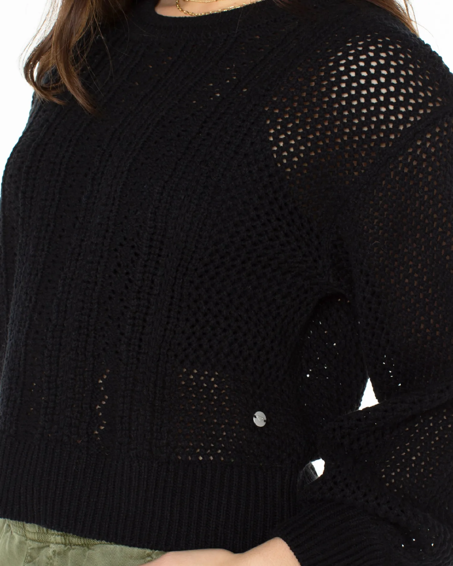 Breezy cotton-blend knit flaunts an airy, pointelle-stitch design-perfect for effortless, beachy-chic style all season. Crew neckline, relaxed fit.