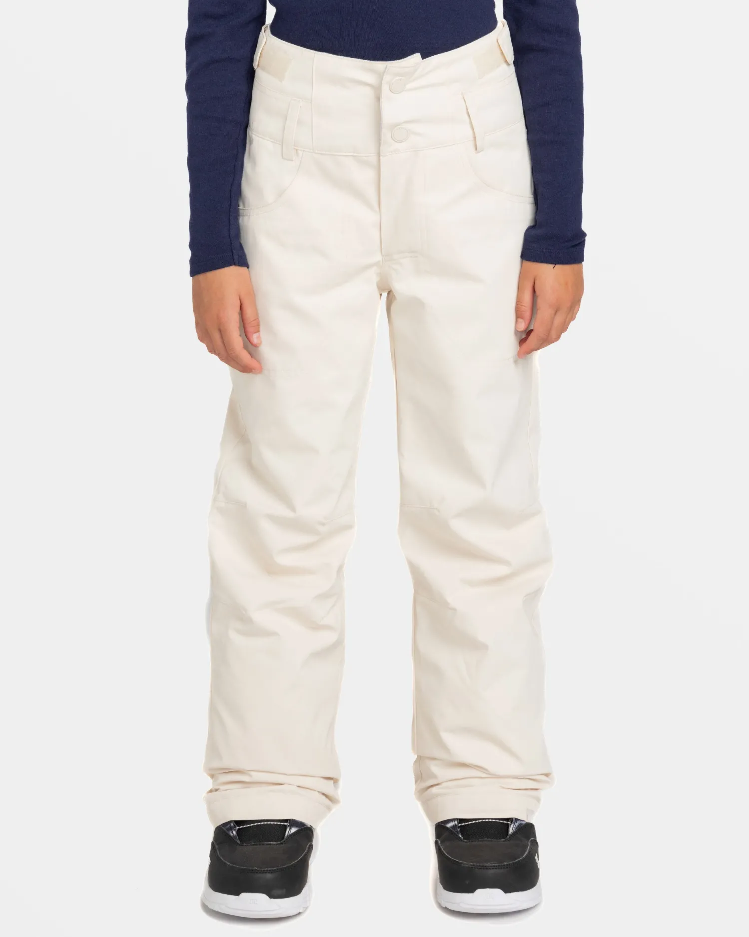 Shred the slopes in the Girls’ Diversion Snow Pant from ROXY. This tailored, waterproof pant uses ROXY DryFlight ® technology and a WarmFlight partially recycled insulation to keep you cozy and dry, while the adjustable waist and boot gaiters provide a customized fit. With functional pockets and a sleek, tailored fit, this pant is your new best friend on the mountain. Featured here in the Buttercream colorway.