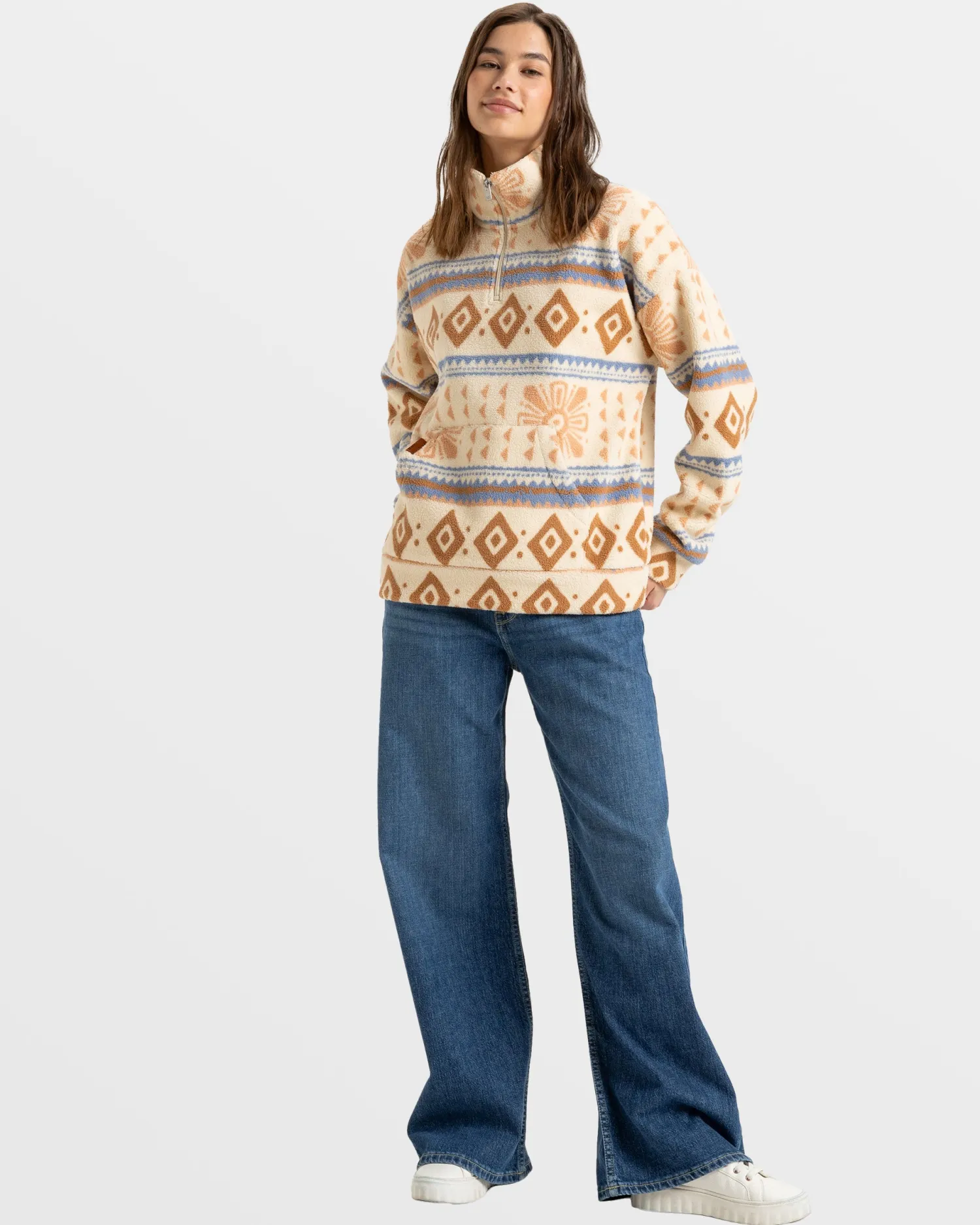 Wrap yourself in the cozy comfort of the Live Out Loud Half Zip Polar Pullover from ROXY. This soft, sherpa fleece features a kangaroo pocket to keep your hands toasty and a regular fit for easy layering. Embrace the spirit of adventure in this versatile, all-season essential. Featured here in the Parchement Morockin Crush Smal colorway.