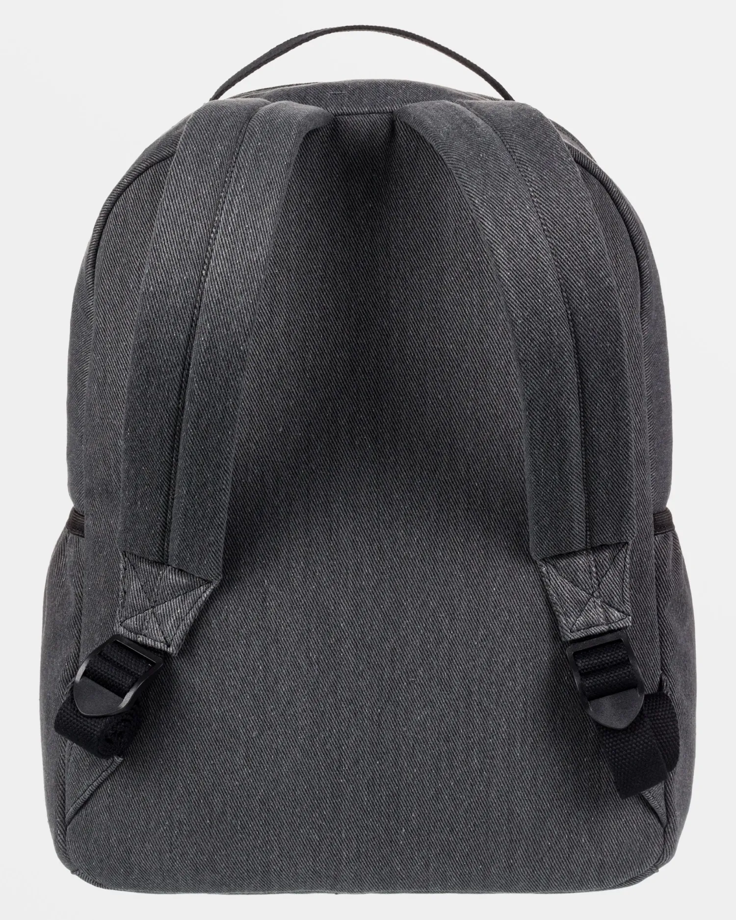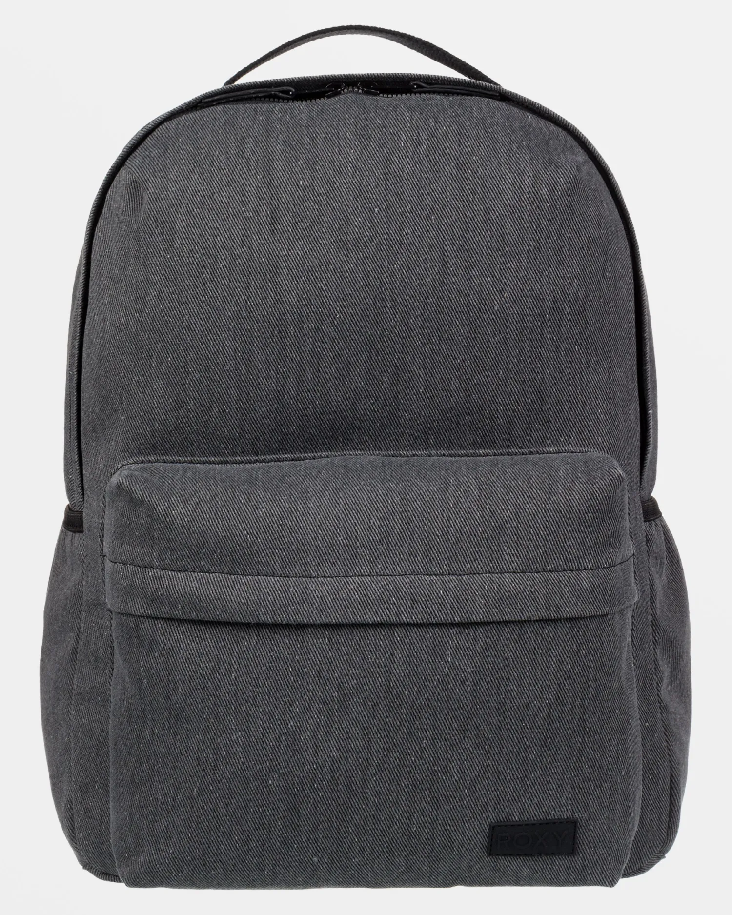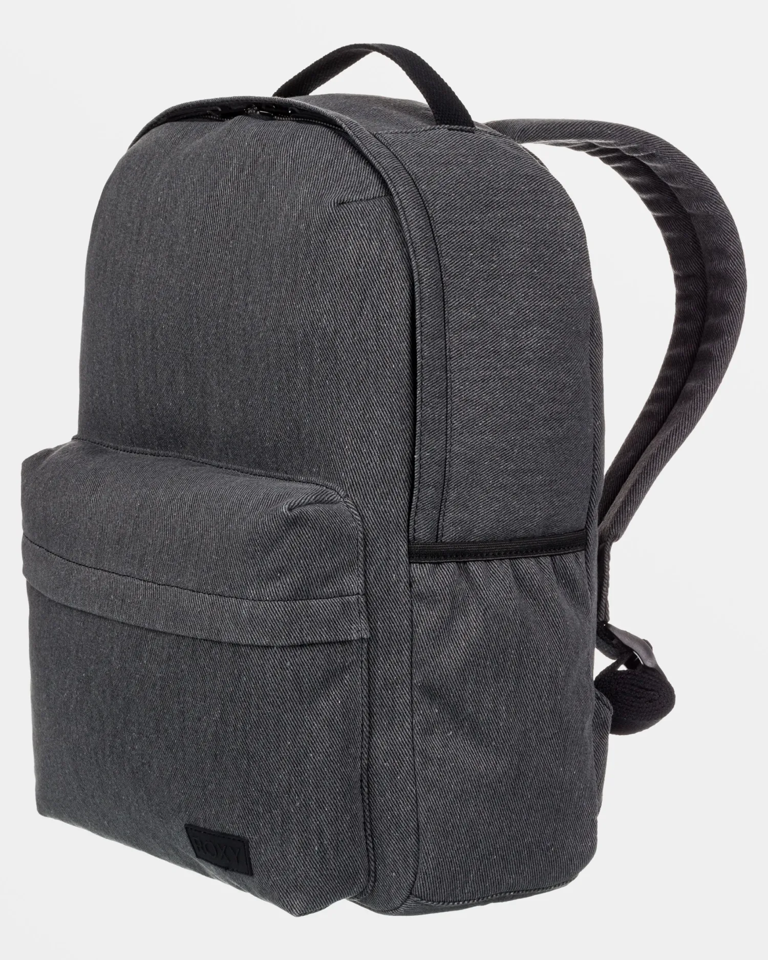 The Melting Spot Backpack from ROXY is a versatile medium-sized backpack crafted from durable cotton canvas. With a roomy main compartment, zippered front pocket, and side water bottle holders, it keeps all your essentials organized. Padded straps and back panel provide comfortable all-day wear, while the iconic ROXY branding adds a stylish touch. This backpack is the perfect companion for everyday adventures. Featured here in the Anthracite colorway.