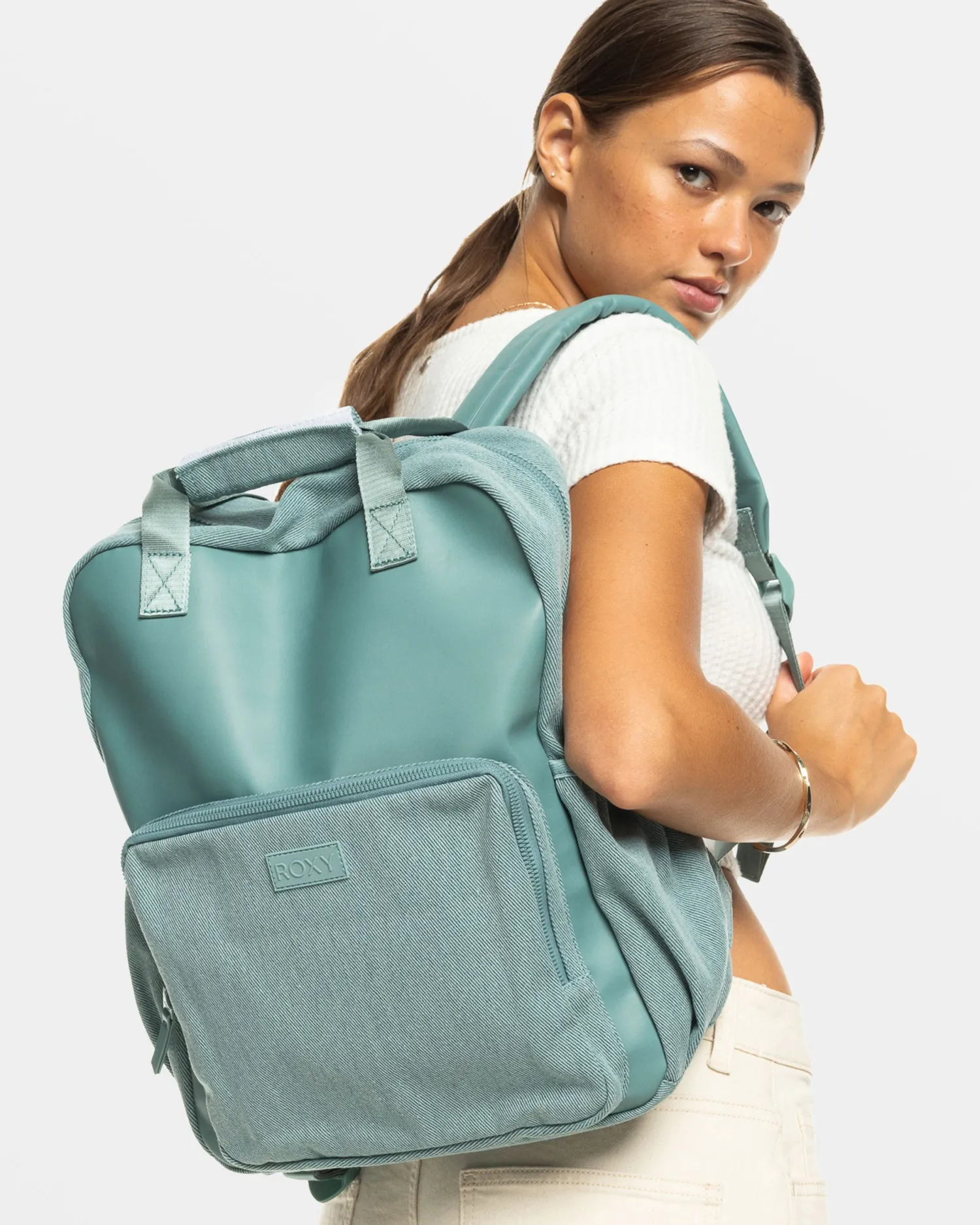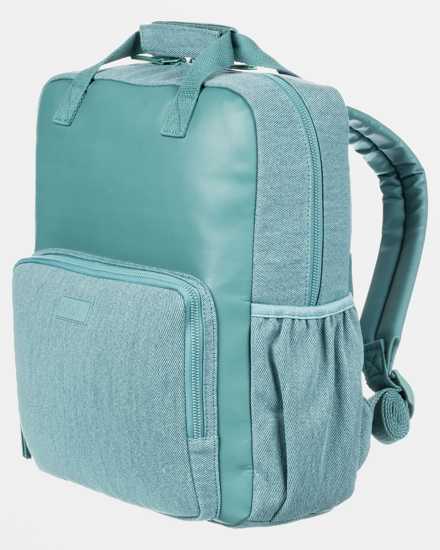 This mini Melting Spot backpack from ROXY is a perfect accessory for daily adventures. Crafted from durable cotton canvas, it features a roomy main compartment, padded laptop sleeve, and convenient pockets for all your on-the-go needs. Adjustable straps and a padded back panel ensure a comfortable, customized fit, while the sleek logo branding adds a touch of style. Featured here in the Mineral Blue colorway.