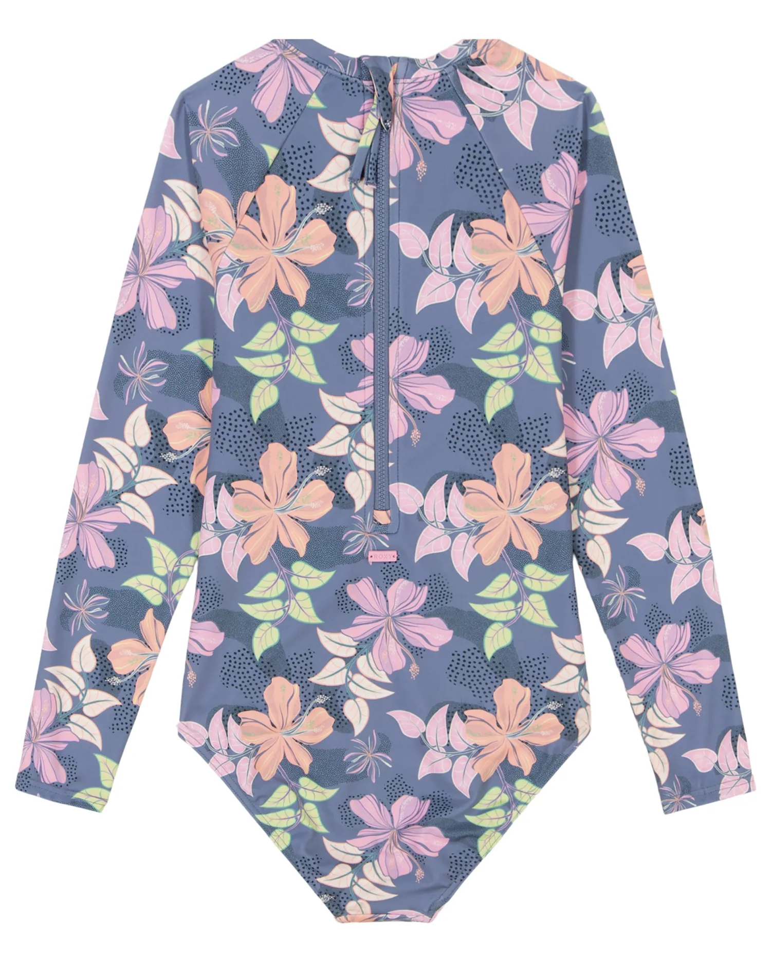 Dive into floral fun with this girls’ Hidden Garden onesie. The stretchy polyester blend and zip-back ensure comfort, while long sleeves offer extra coverage for sun protection. With its vibrant all-over print, she’ll bloom with confidence in and out of the water. Featured here in the colorway.