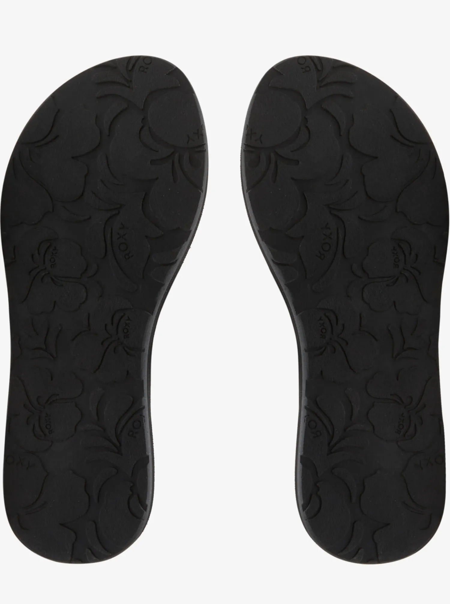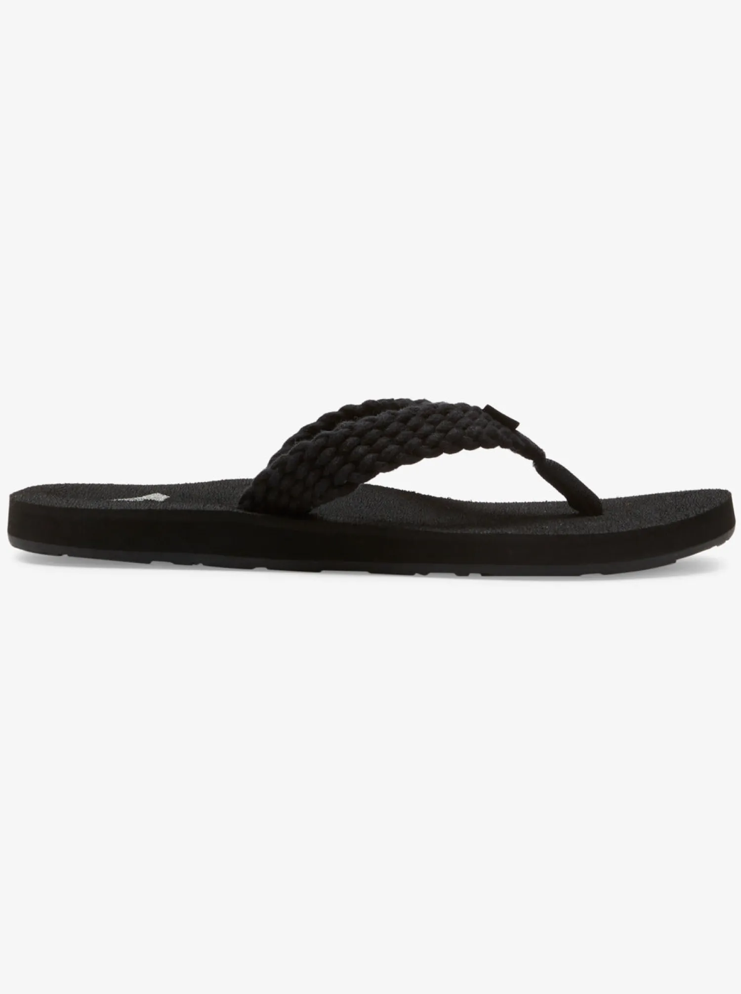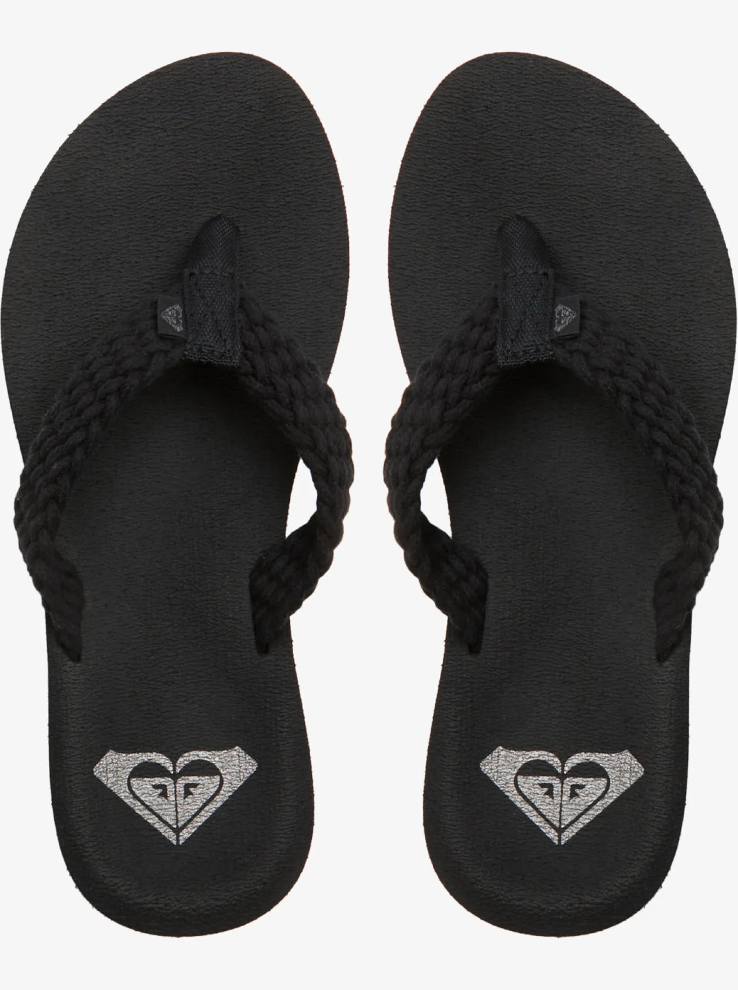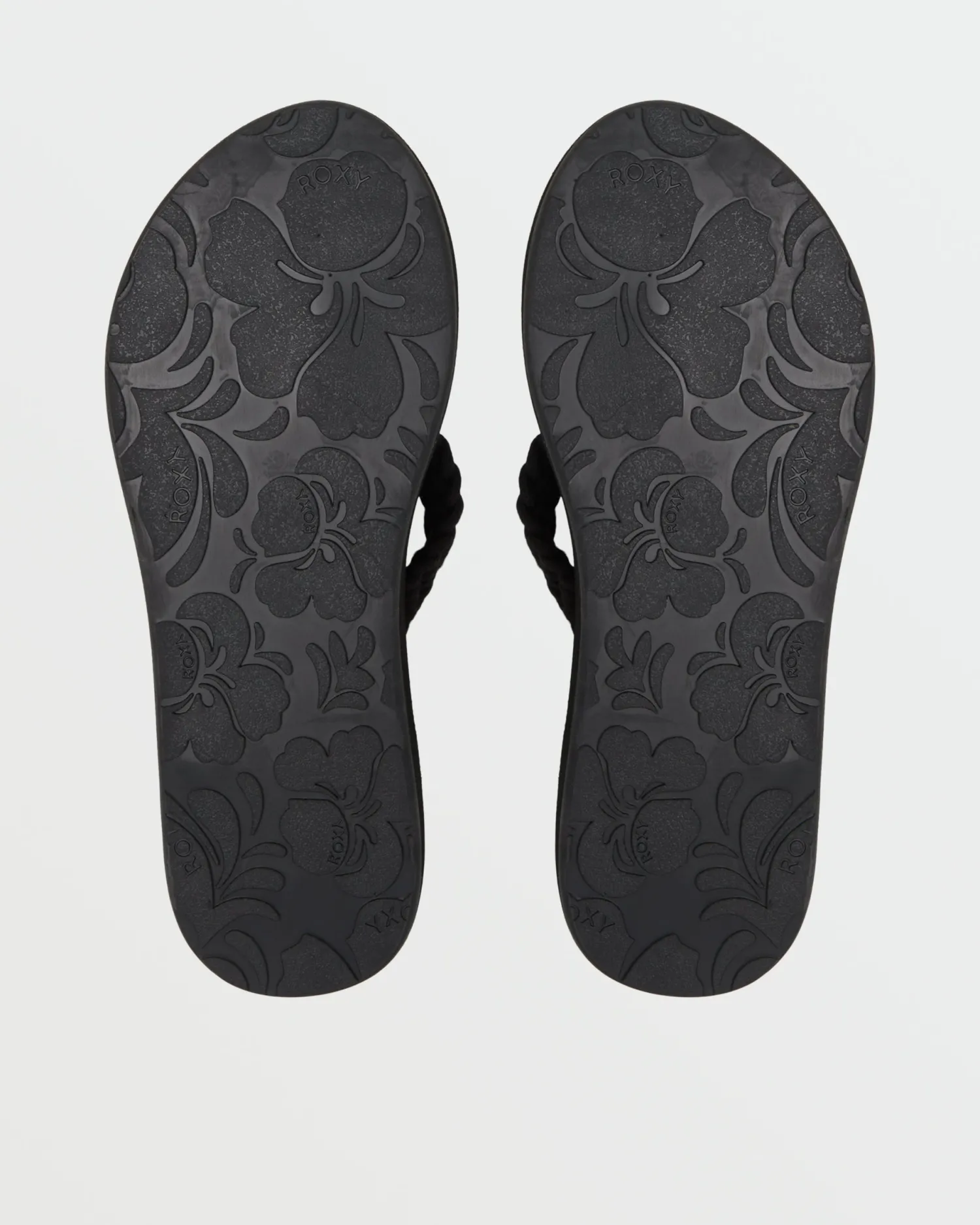 Breezy Roxy’s Porto IV sandals for women. Featuring a braided cotton blend strap and comfy EVA footbed, they’re your go-to for beach days or casual outings. The rubber outsole ensures durability, so you can focus on fun in the sun. Featured here in the Black colorway.