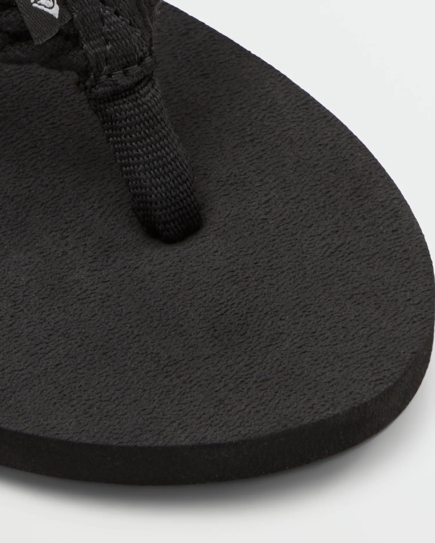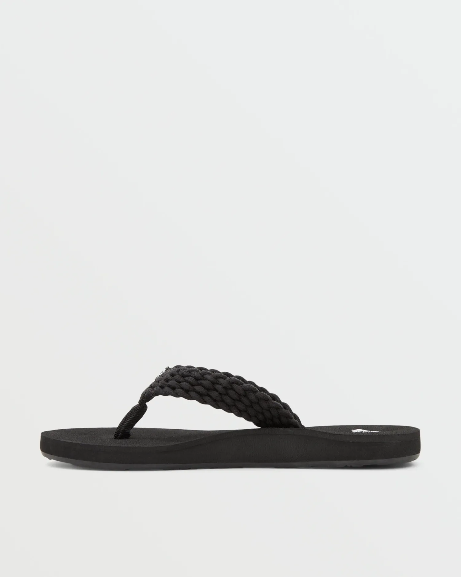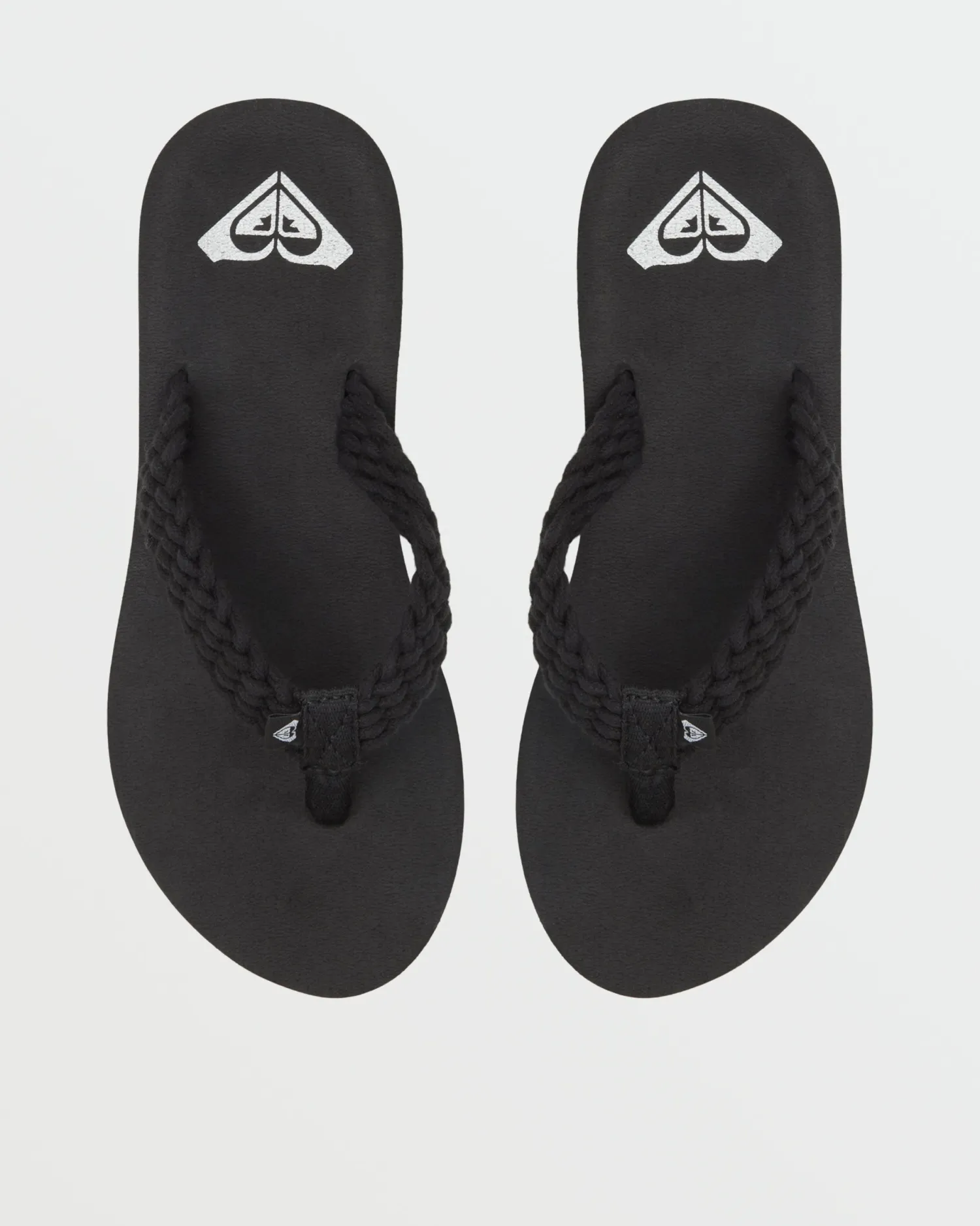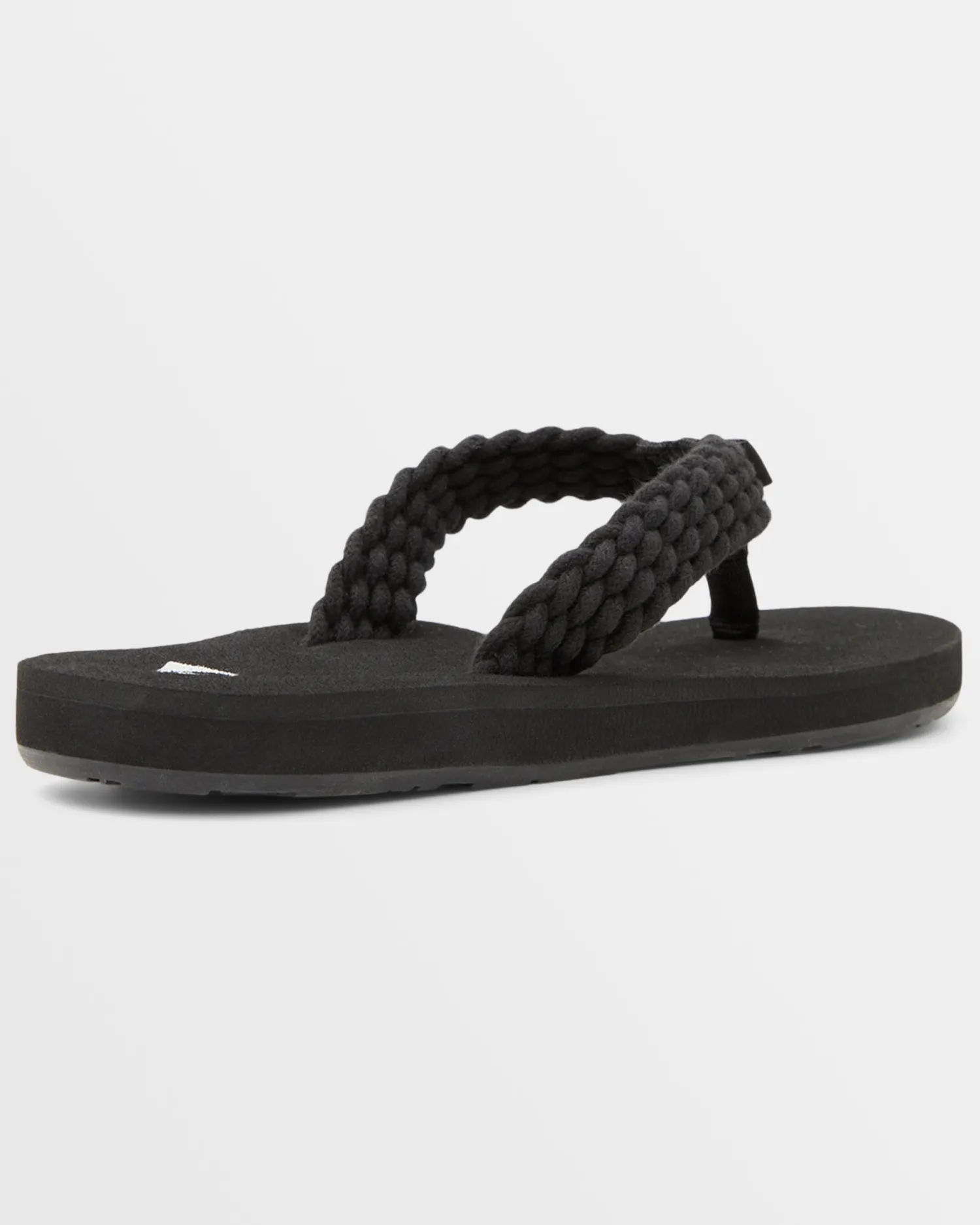 Breezy Roxy’s Porto IV sandals for women. Featuring a braided cotton blend strap and comfy EVA footbed, they’re your go-to for beach days or casual outings. The rubber outsole ensures durability, so you can focus on fun in the sun. Featured here in the Black colorway.