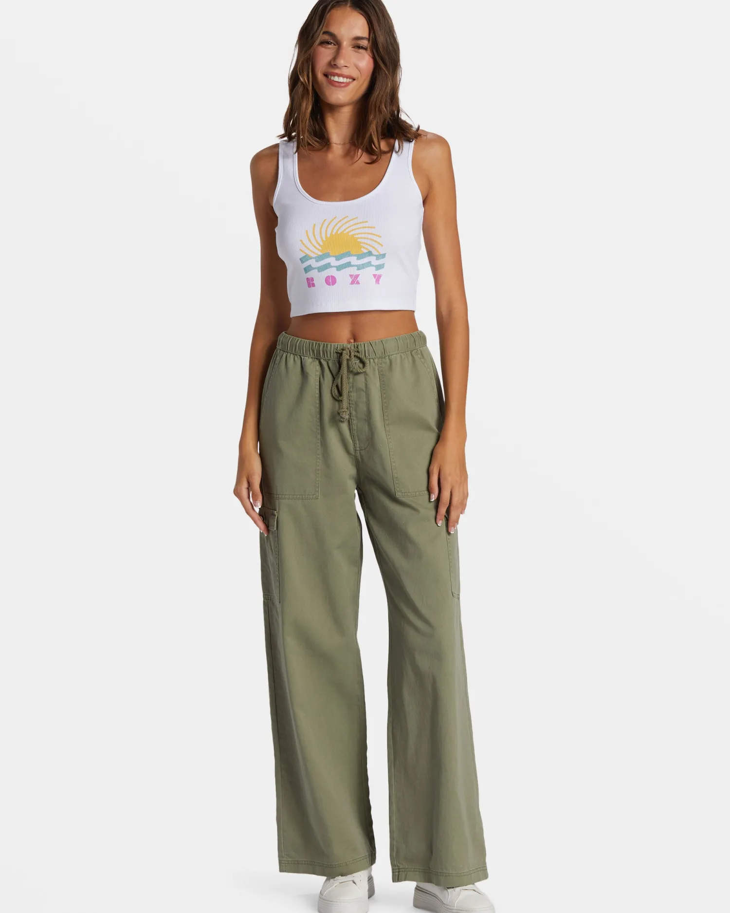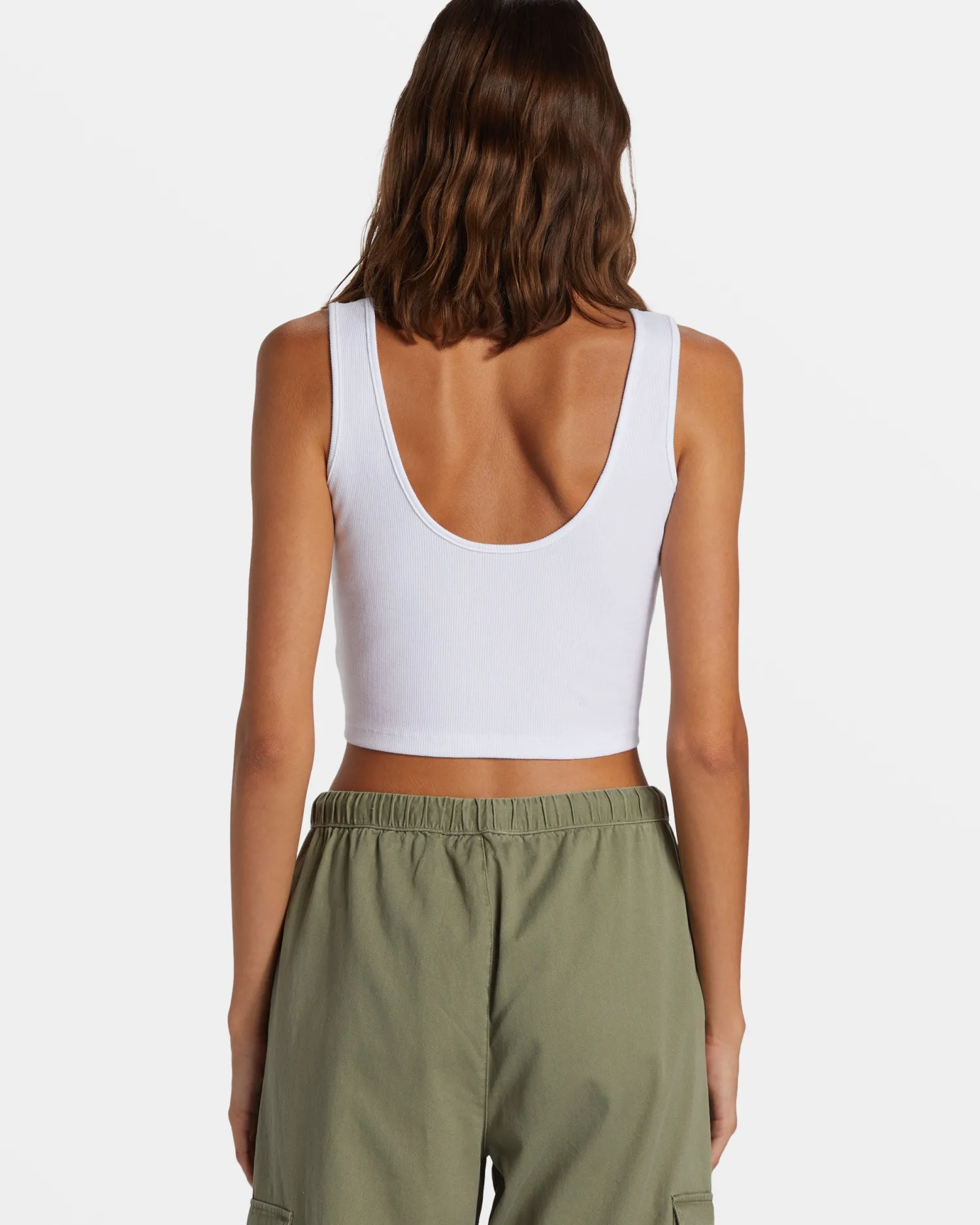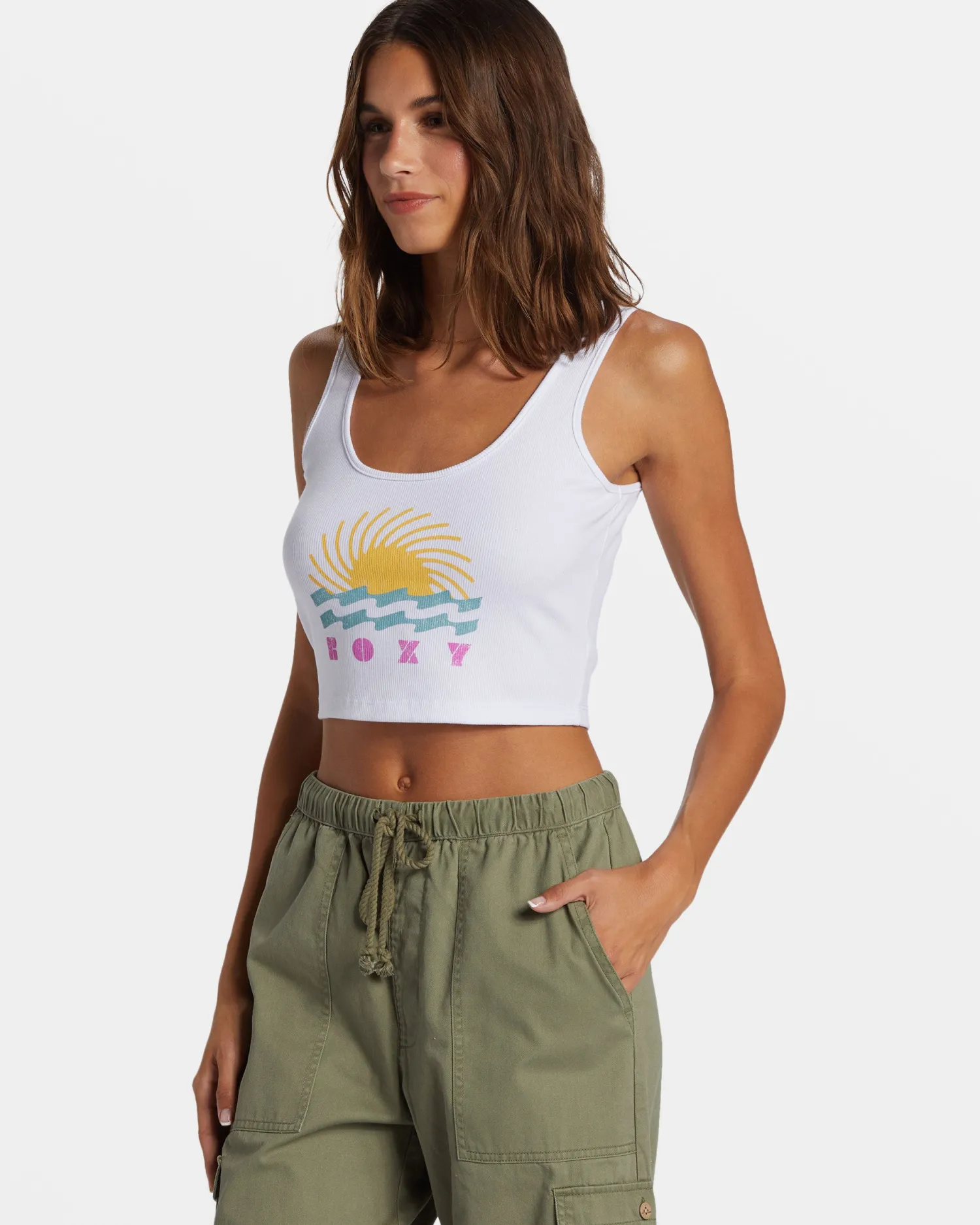 Dive into effortless style with the Simple Surf Dive In Cropped Tank Top. Crafted from a ribbed knit, this fitted tank features a scoop neck and lettuce-edge hem for a laid-back look. Flaunt the front print for a touch of regional flair – perfect for beach days and beyond. Featured here in the Egret colorway.