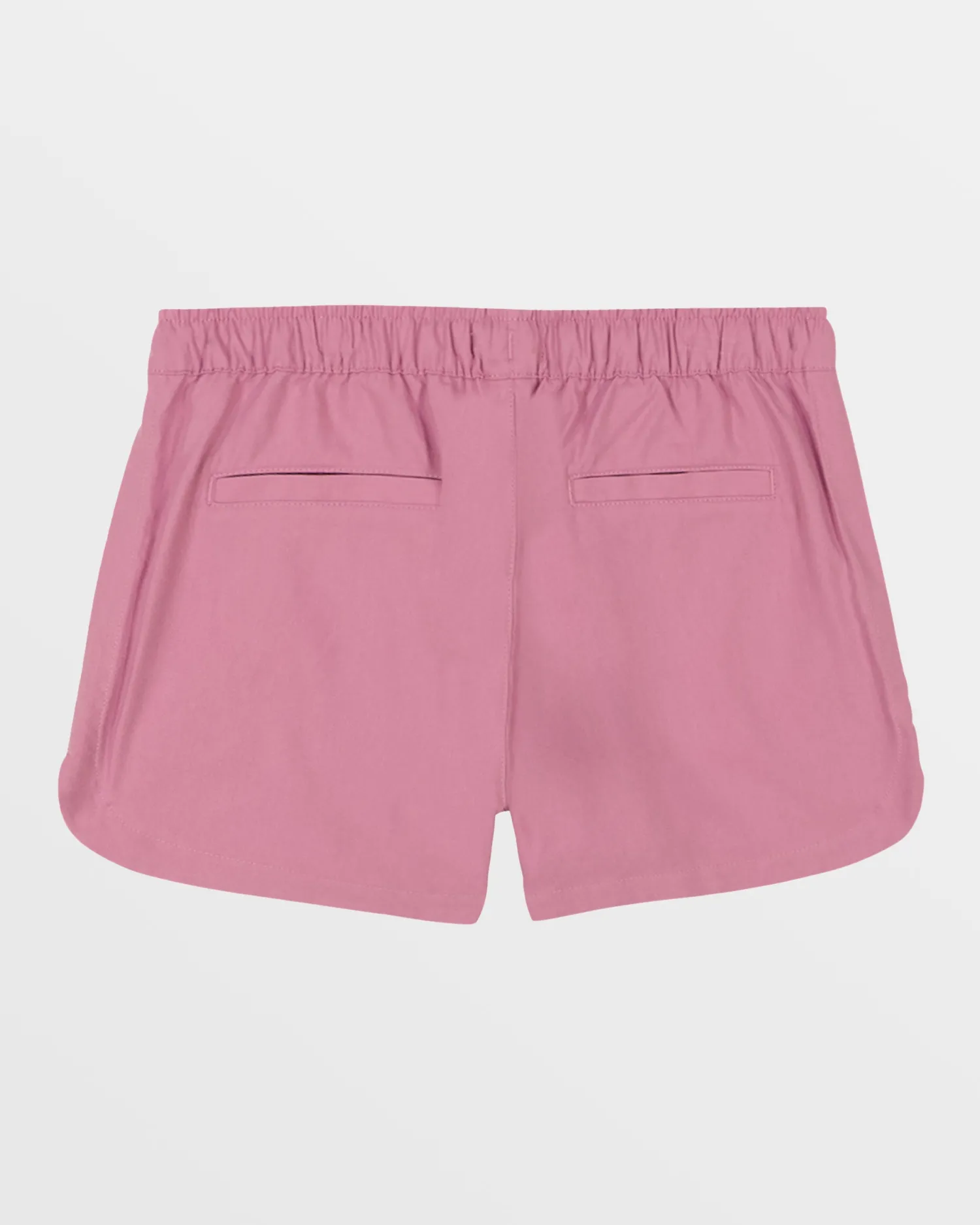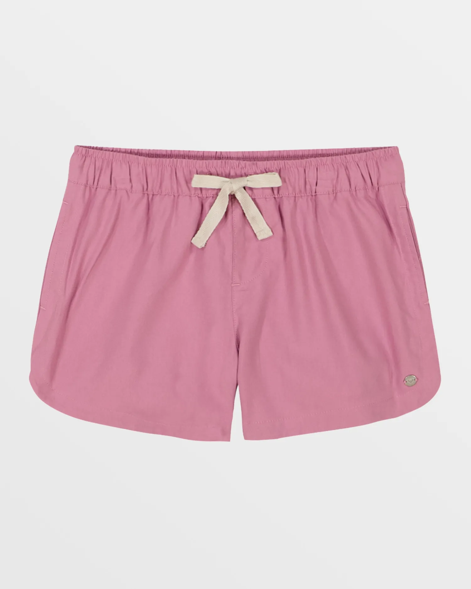 Comfy Roxy shorts. Made from soft cotton-blend twill, they feature an elastic waistband with drawcord for a perfect fit. The 3″ inseam and regular cut offer easy movement, while a metal logo charm adds a stylish touch. Featured here in the colorway.