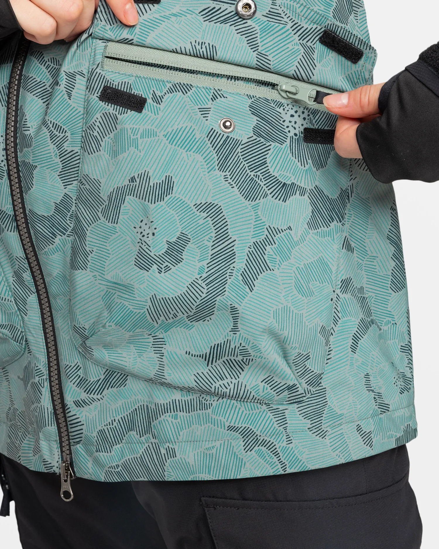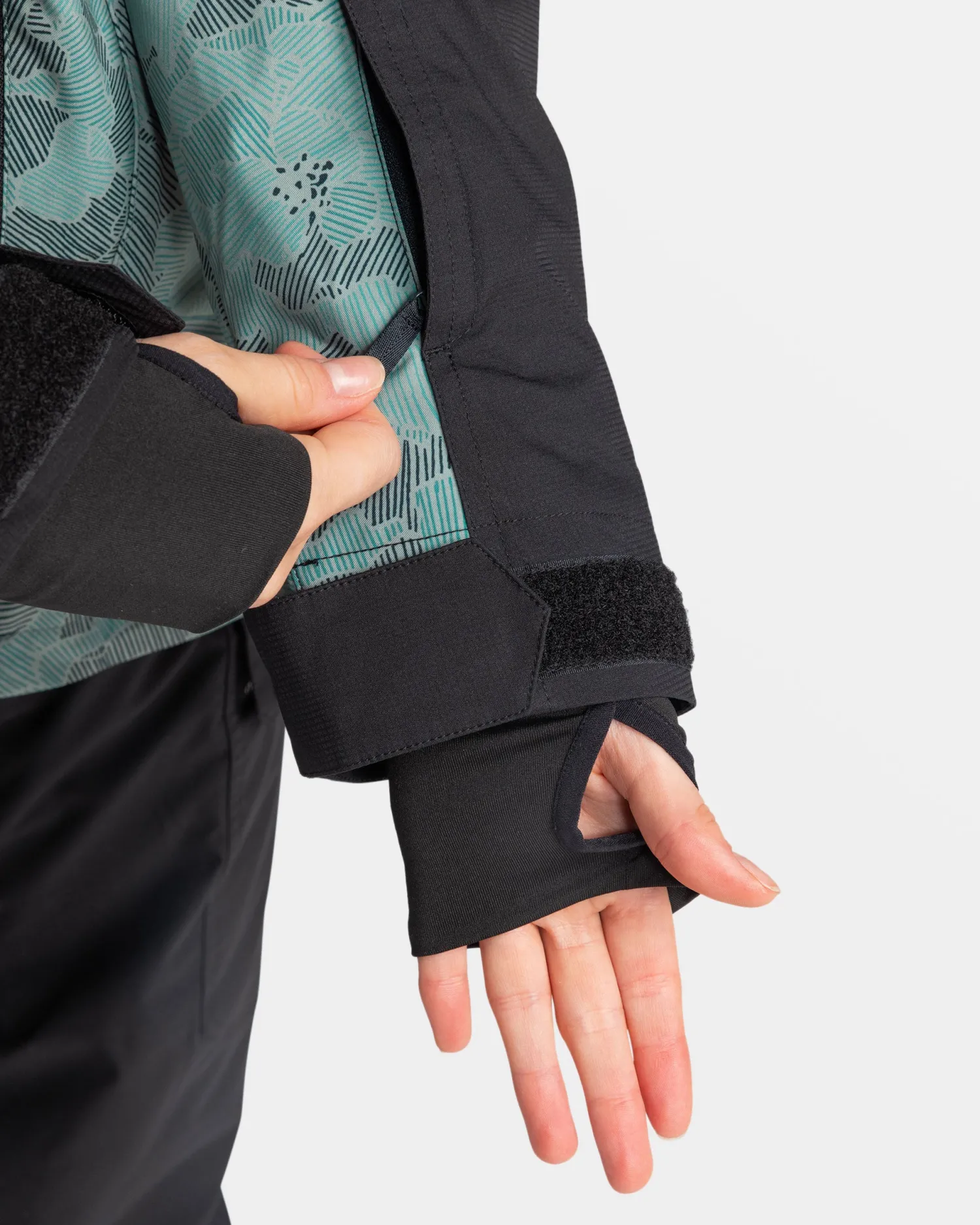 Shred the slopes in style with the Stated Snow Jacket from ROXY. Designed in a tailored long fit, extra-strength waterproofing, and PrimaLoft ® Black insulation, this jacket keeps you cozy and dry while you carve up the mountain. The ROXY HYDROSMART collar and WARMLINK belt compatibility add extra warmth and comfort, so you’re free to focus on the fun. Featured here in the Lily Pad Sketch Book colorway.