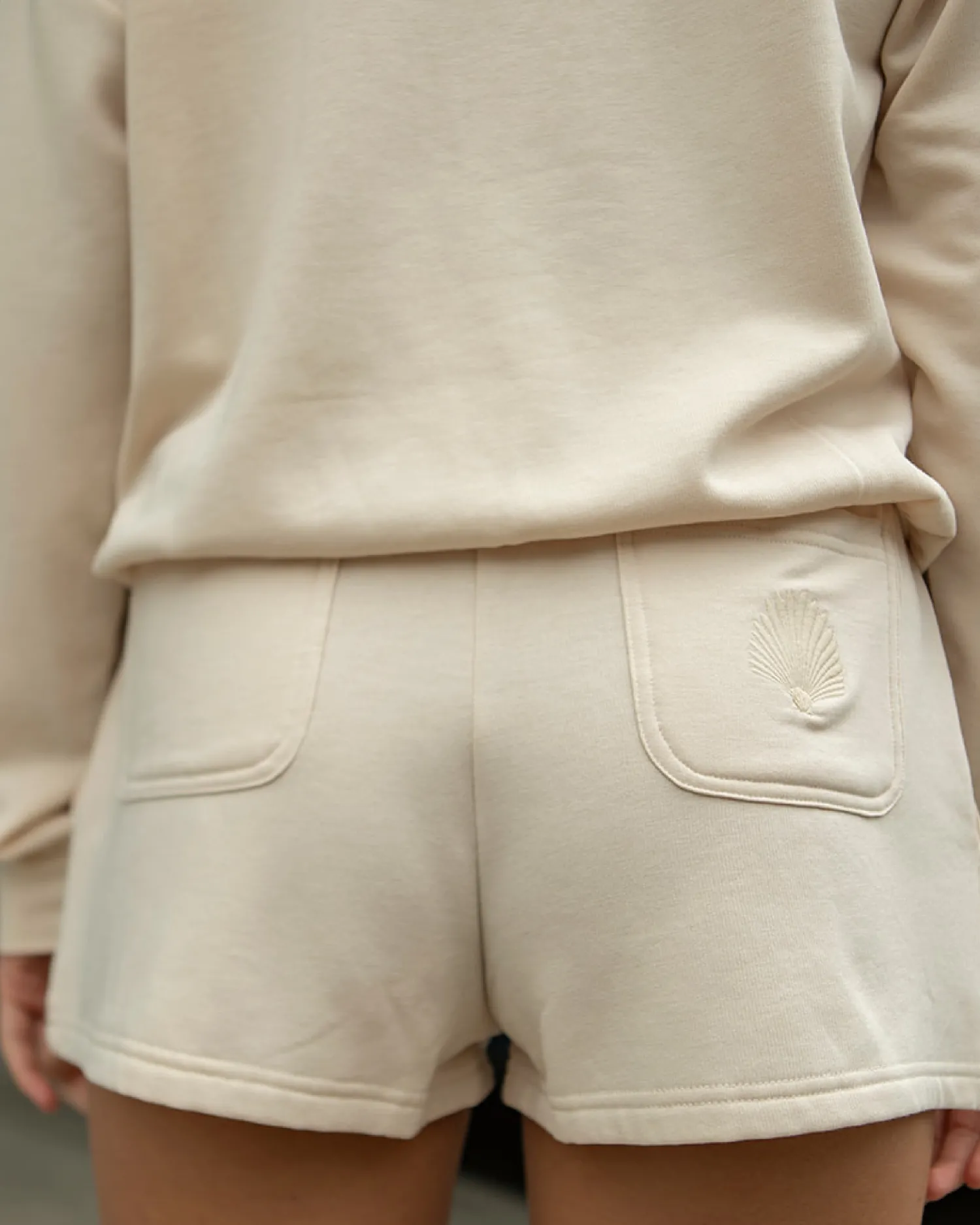 Slip into effortless style with the Surfing By Moonlight shorts in ivory cream. The soft, modal-blend construction features a relaxed fit, drawcord waist, and pockets galore – perfect for moonlit beach strolls or lazy days at home. With its chic embroidered branding, this short will have you surfing through life in comfort and style. Featured here in the Parchment colorway.