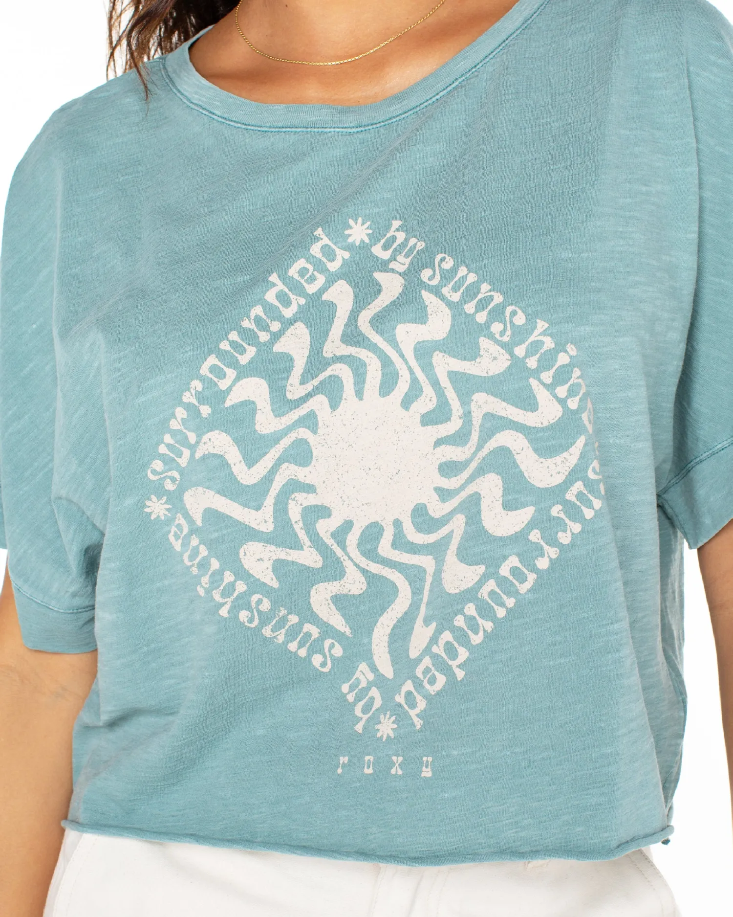 Radiate pure sunshine in this breezy, 100% cotton jersey tee from beach brand Roxy-the ultimate in cozy casual wear, made for basking in the summer rays.