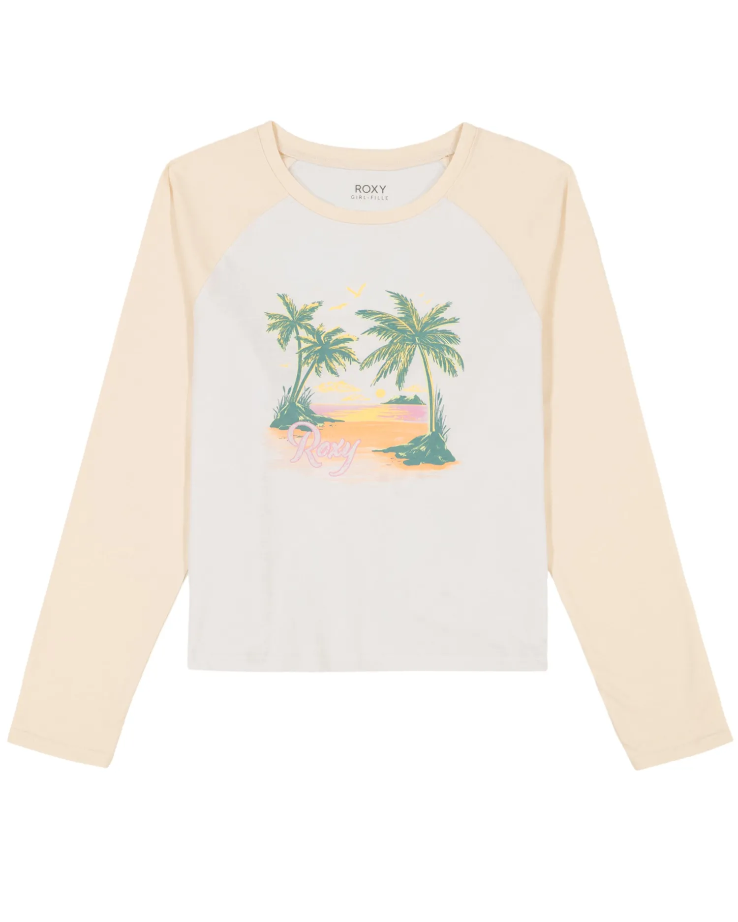 Girls will love this relaxed-fit Roxy raglan tee. Made of comfy cotton-poly slub jersey, it features long sleeves and a crew neck. The dreamy graphic print adds a cool vibe to any casual outfit. Featured here in the colorway.
