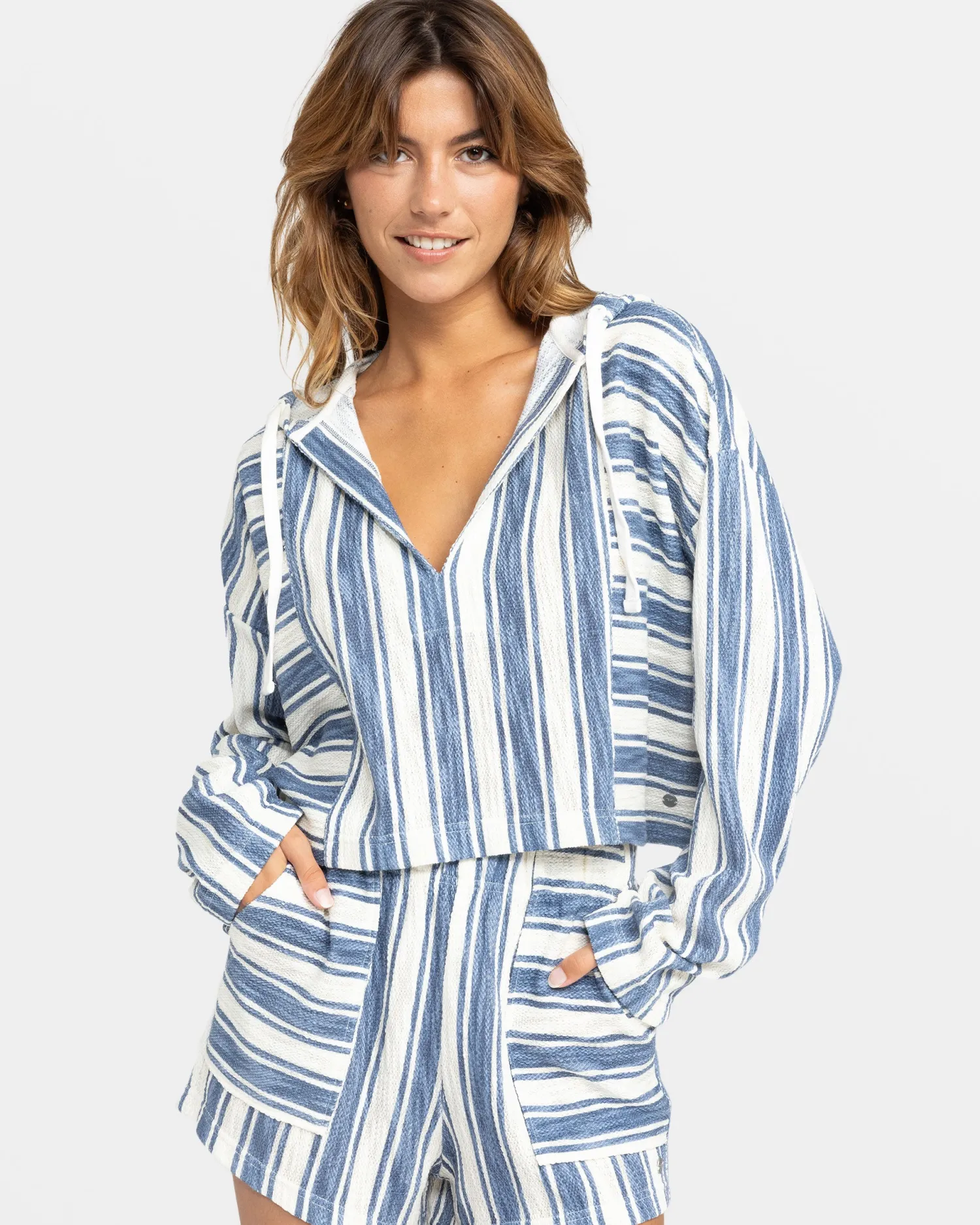 Crafted of soft French terry fabric, the Todos Santos hoodie features a loose, slightly cropped fit with a V-neck for a breezy beach-ready feel. With its bold stripe design, it’s a quiet statement piece for effortless summer style. Make it a set with the matching shorts. Featured here in the Wild Wind Sandy Stripe colorway.