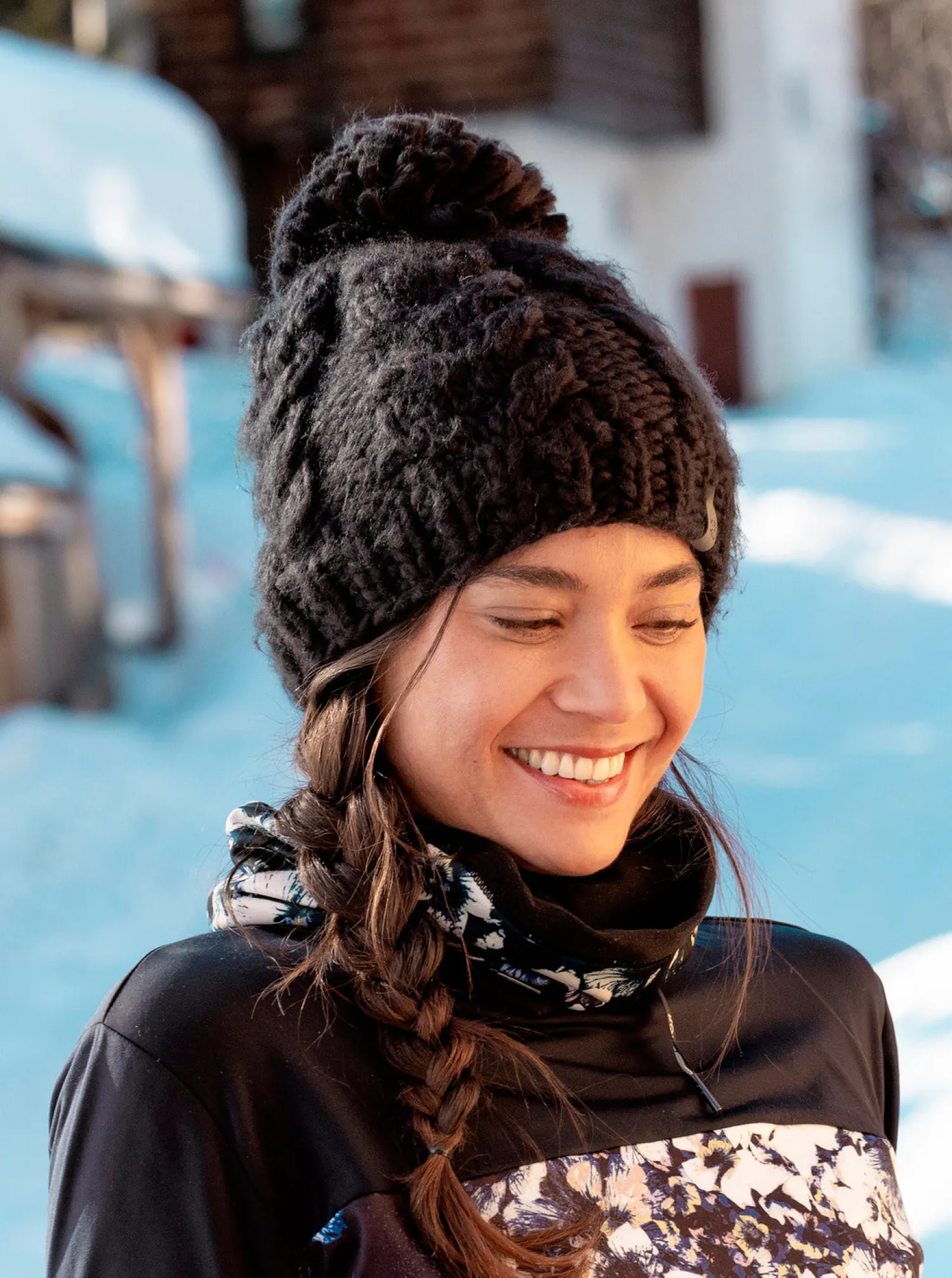 The Winer Beanie by ROXY goes classic in a chunky cable-knit design with a pom-pom adding a playful touch. This cold-weather cap features a polar-fleece inner band to protect your ears from the cold. Featured here in the True Black colorway.